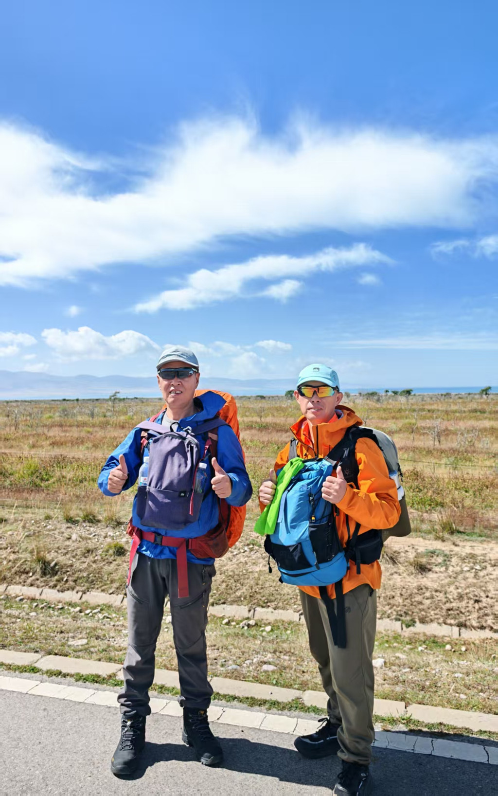 青海湖下雨就冷,天晴就晒,别看只有十几度,一样晒着你脱皮,你要知道这是在三千多米的高度晒太阳呀!头两天没太在意,以为这点阳光晒的多暖和呀,结果晒成拉萨人了,耳朵都晒黑了,后几天只敢露眼!所以到高原地区一定要做好防晒措施。高海拔徒步别追求速度,尽量平缓匀速的走,最好按自己的节奏走,不要追或等前后面的人而过快过慢,更不要跑。长途徒步最重要的是前三天,看你能不能坚持住,特别是第二天第三天,如果能走完前三天,基本就可以走下去了,这是我的经验。能坚持走完,你已经超过全国99.9%的人,好好享受你的三九人生吧!