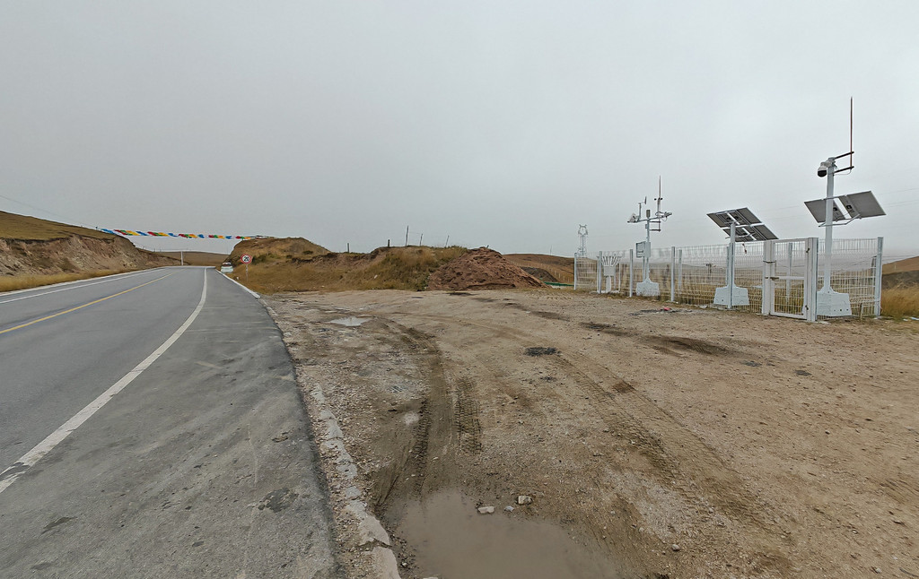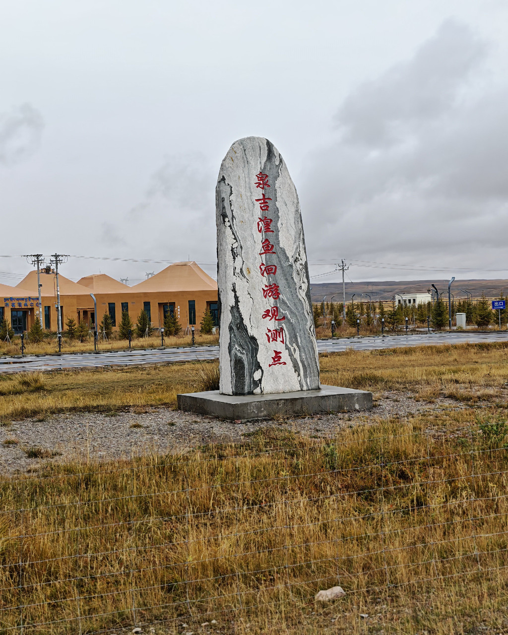 第九天(10月7):甘子河-西海镇,全程43KM(292-335KM),用时12小时(7:30-19:30),前半程走G315国道,后半程走G213。甘子河有两条路可走,一条走环湖西路S207到金沙湾,约53KM,一条继续沿G315到西海镇,约43KM。直走金沙湾,当天就可以结束环湖,但53KM估计要走到晚上10点后了,体能消耗会很大,那个地方还没住宿地,白天都不好打车,晚上更不用说了,到时怎么办?还是到西海镇吧,剩下的第二天再走了。当天气温很低,感觉是我们环湖最冷的一天,飘着毛毛雨,东北风吹的呼呼响,有个六七级吧,对着我们吹,顶着风走,实在是太难受了。而且一路差不多全是向上坡度,整个上午走的很艰辛。中途10KM处有个加油站,就再无补齐地了,只能吃准备的干粮。中午走到了本次环湖最高点的垭口(3410米,有一个气象自动站)就开始一路向下,直到西海镇,差不多20KM,走的很爽,途中离西海镇六七公里处就是原子城景区,这是中国第一颗原子弹研发试验基地。终于在晚上7点半左右到达西海镇。