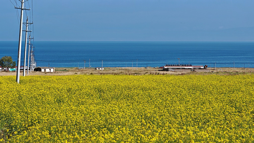 第二天(9月29):甲乙村-江西沟,全程42KM(31-73KM),用时12小时(7-19点)。全程走倒湖茶公路,这是一条很不错的旅游公路,靠湖一边有专门的步行道,这条路平缓少坡。青海湖主景区二郎剑离甲乙村约21KM,我们中午走到二郎剑,吃饭休息打卡。2点左右启程继续赶路,争取天黑前走到江西沟,还有21KM,21KM在平原地区我们可能4小时之内就可以走完,但在高海拔地区要走5个多小时,所以不敢过多停留,大约19点多一点到达江西沟。今天天气与昨天差不多,走的还算轻松,快到二郞剑时路遇青海湖秋天最后一片油菜花。