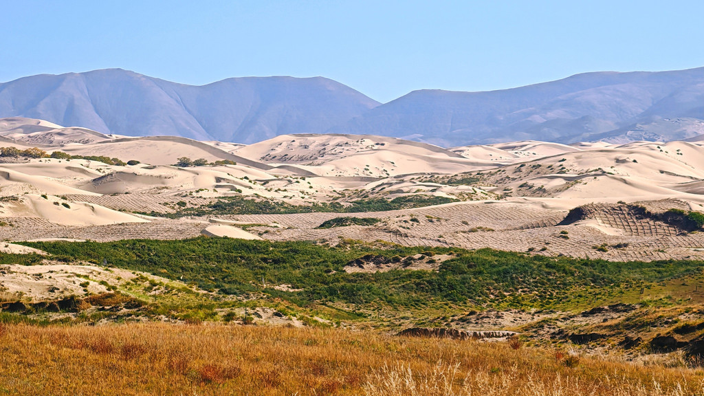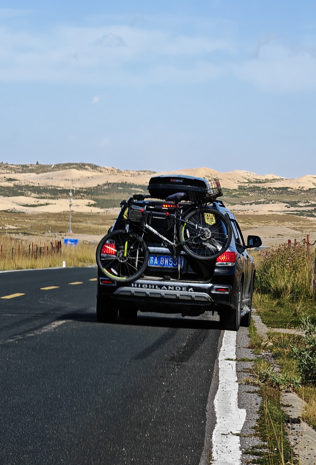第一天(9月28): 金沙湾一甲乙村,全程31KM。用时9个半小时(8:40-18:10)。我们把起点定在金沙湾(S207环湖东路13KM处),所以当天从西海镇打了个车到金沙湾,约27公里。这边打车极不方便,什么滴滴网约车根本没人接单,只能按出租车计费,比网约车贵一倍吧。第一天特意走少一点,以适应青海湖的气候和高海拔。途中(15KM处)湖东种羊场是一个比较大的餐饮住宿补齐地。头天虽说距离不长,但走的还是满辛苦的,上下起伏大,两边都是荒漠,这段公路是一条沙漠公路,远望青海湖就在不远前面,可翻过一坡又一坡的,怎么都到不了边?磨死人!18点多一点到的江西村,这个地方是一个丁字口,环湖东路S207与倒湖茶旅游公路交叉的地方。当天晴5-18℃,阳光明媚。