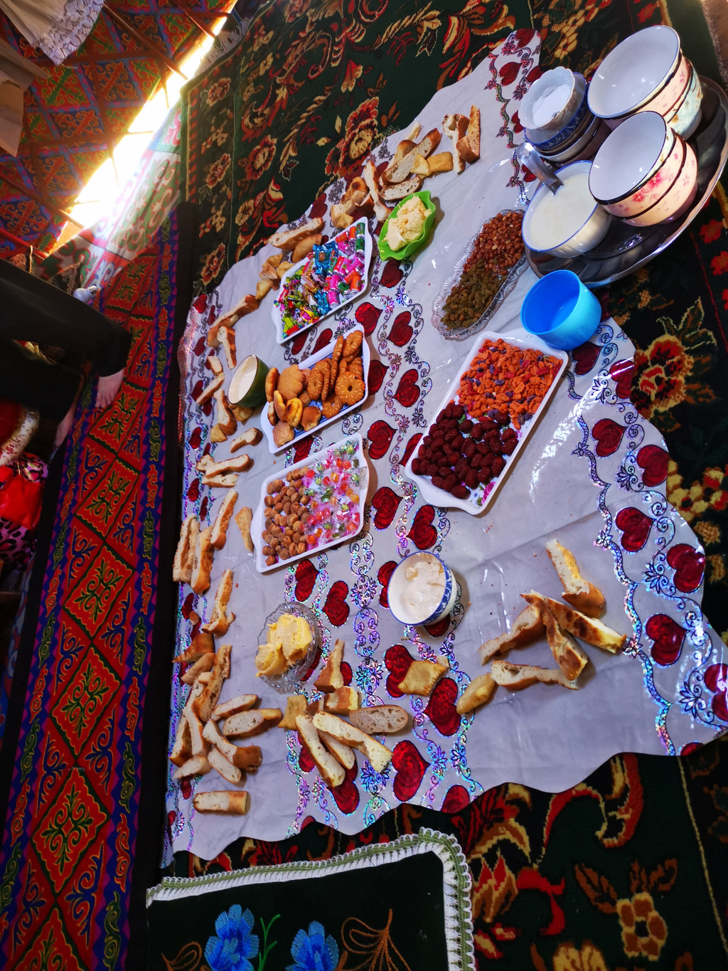 快到特克斯收费站的地方,到维族大叔家做客。体验一下维族的风土民俗,参观庭院,品偿美食。和大叔一起互动。