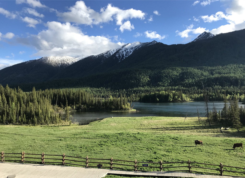 白云长袖善舞,裙摆映白了雪山,碧水青山相依,奏一曲千古缠绵。。还有比这更醉人的风景吗?就连在河滩上安静吃草的牛群,也完美得像似上苍的有意安排,这位上苍一定才华横溢,所有的景致都恰到好处,不多不少。