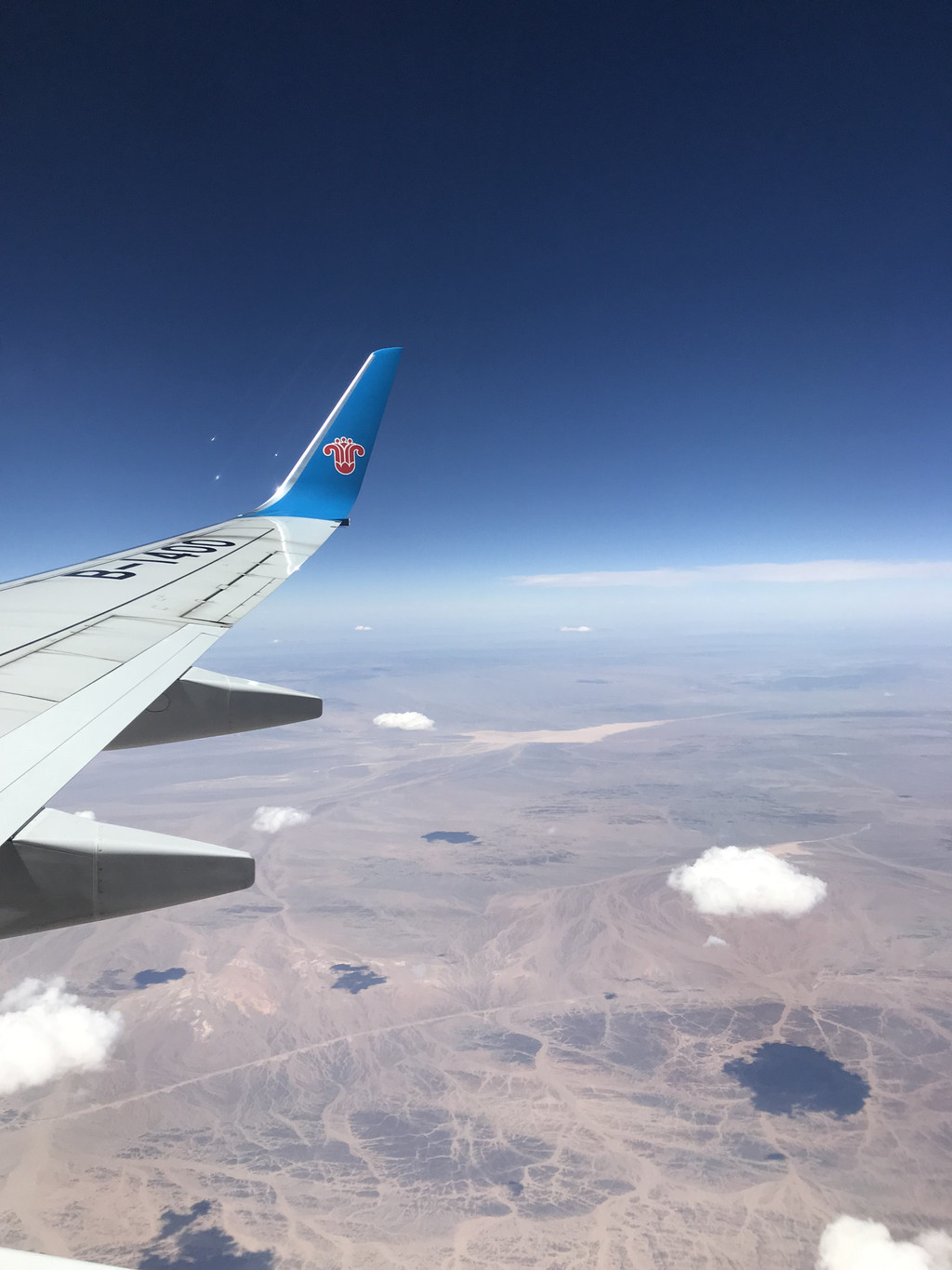 离开北京不久,机翼下方便是无尽的荒原,大西北的辽阔与荒芜,在飞机上一览无余。