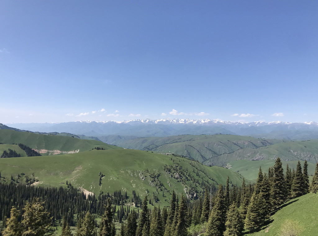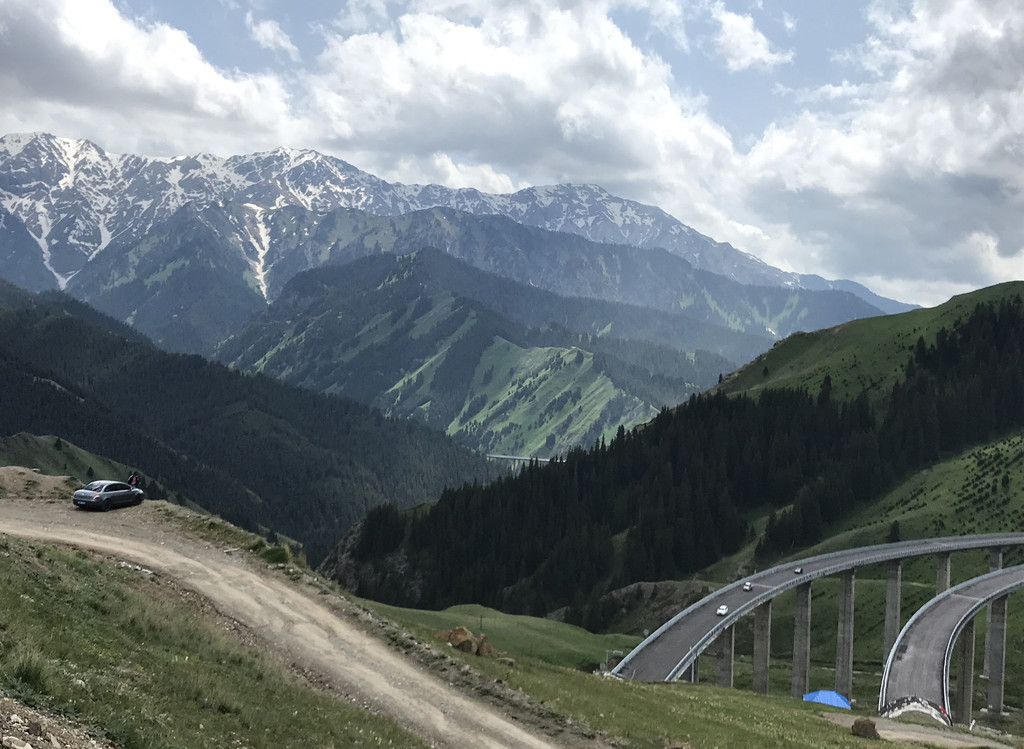 行走在独库公路上,远处的雪山一字排开,蔚为壮观。