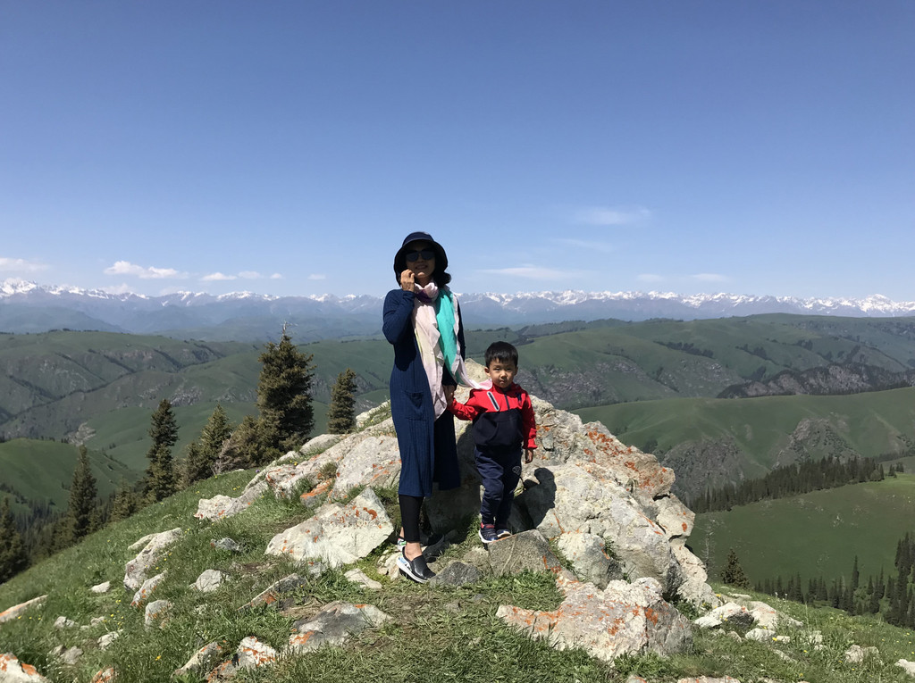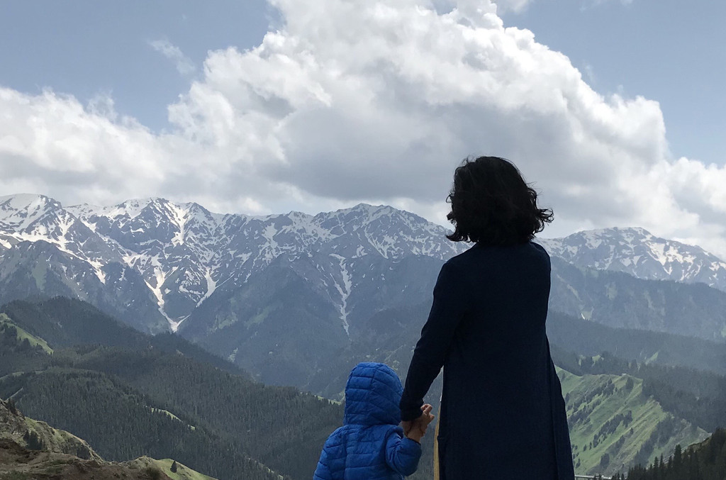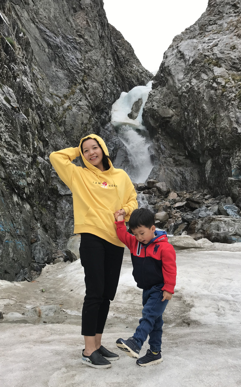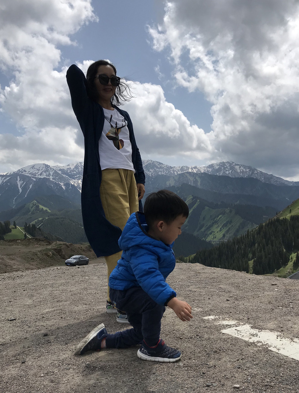 祺妈牵着祺小宝,眺望远处的雪山祈祷,自从西藏单车自驾归来,我们对大山大水充满敬畏,心中有山处处是山,心中有海,处处是海。。