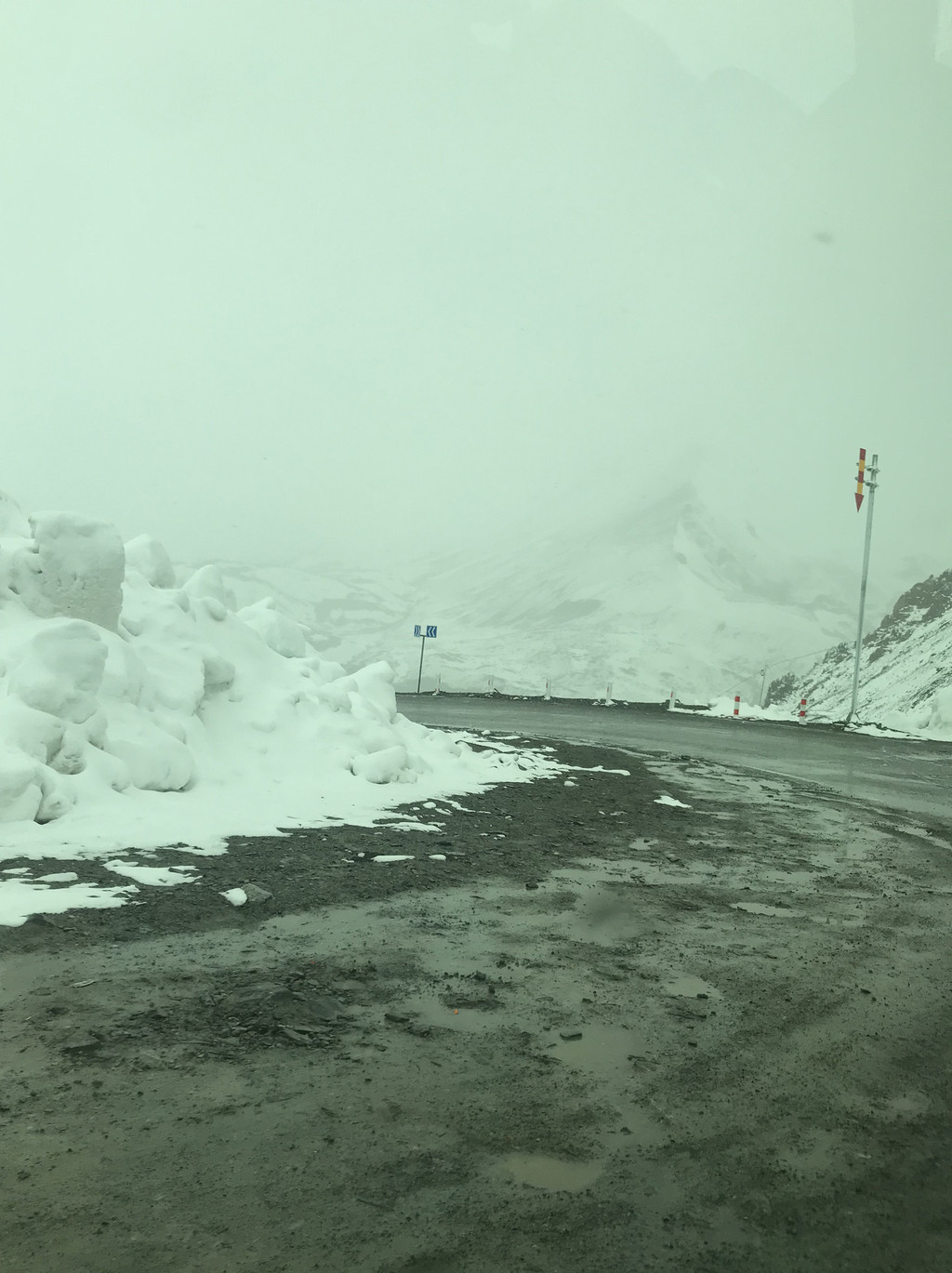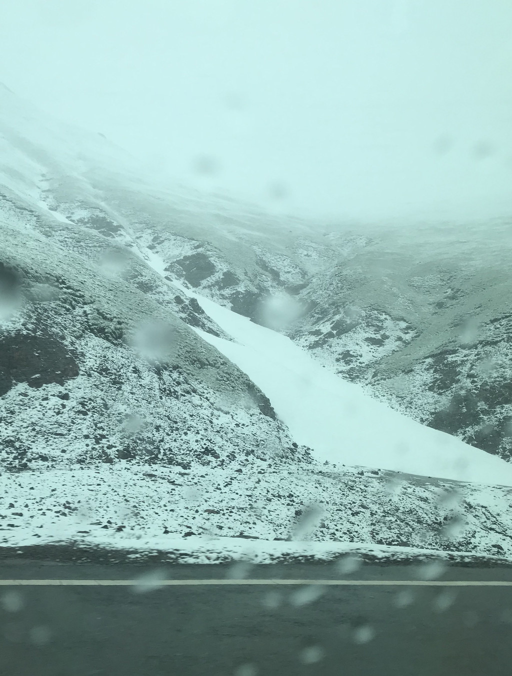 从那拉提到吐鲁番,需要走独库公路克拉玛依方向,向南翻越天山,都说一山有四季,四季各不同,独库公路,一条路就走过四季,那拉提出发时还鲜花绽放草木葱茏,上了天山越走树越少,后面干脆就白雪皑皑,彻骨寒冬,公路旁边的山坡已经被大雪覆盖。