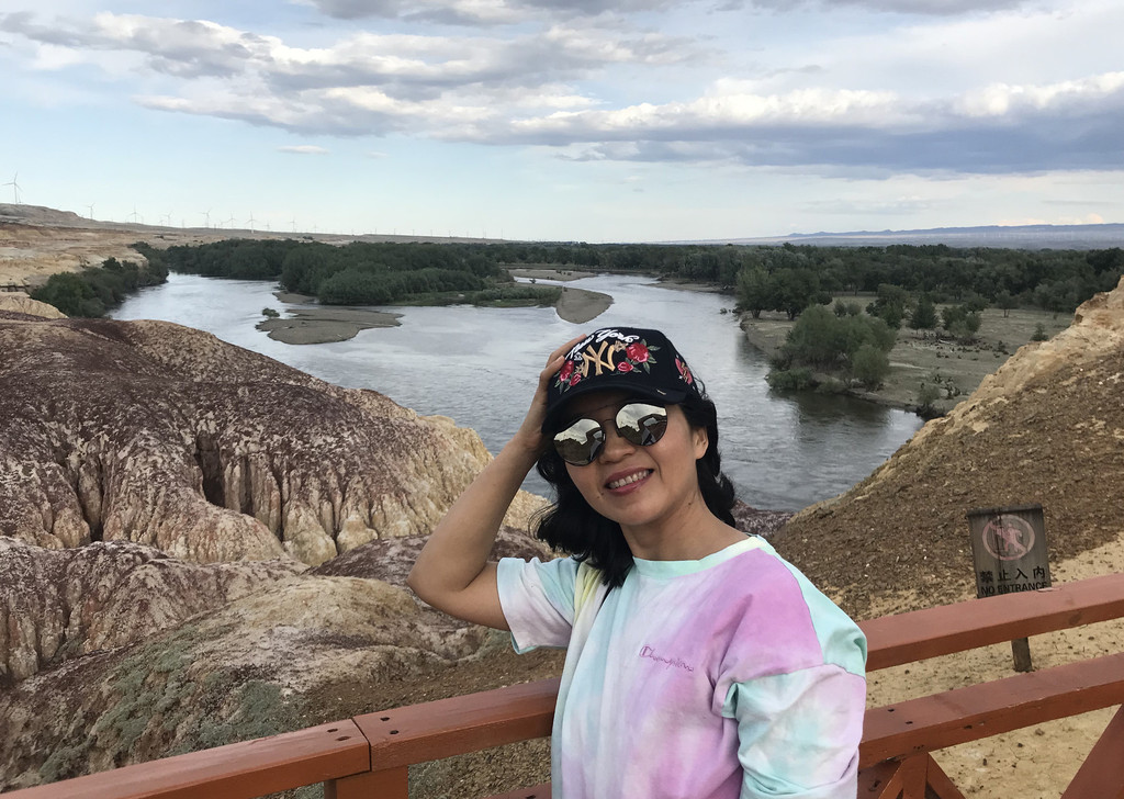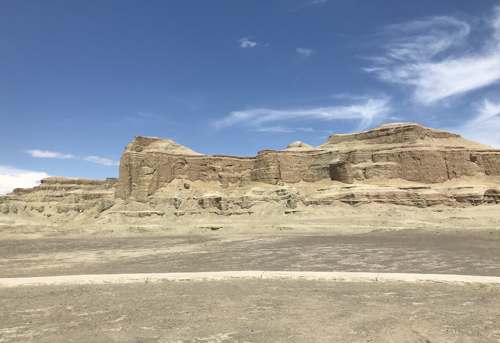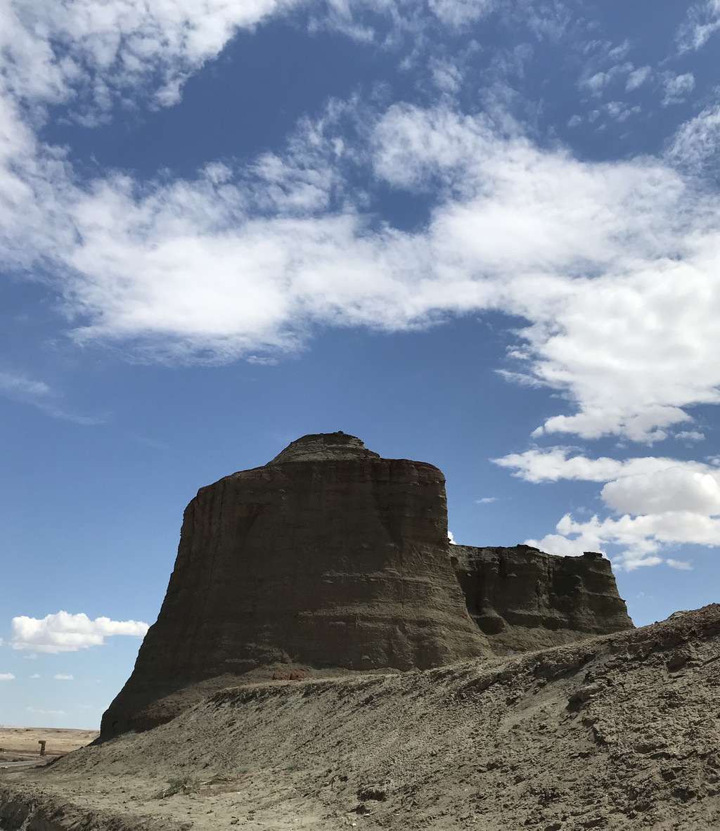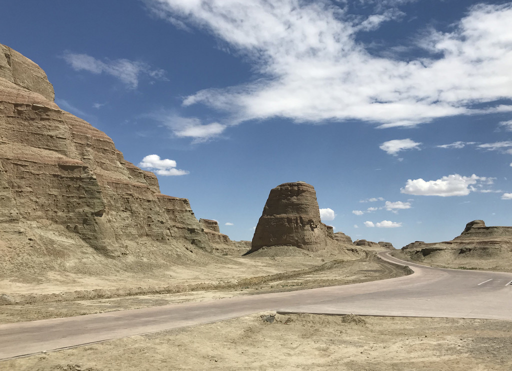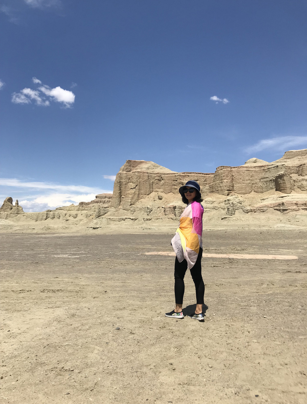 烈日炙烤下的魔鬼城,温度很高,前几天在喀纳斯给皮肤补的水,看来要烤干了,祺妈连“姿势”都懒得摆了,一副很懒散的样子。
