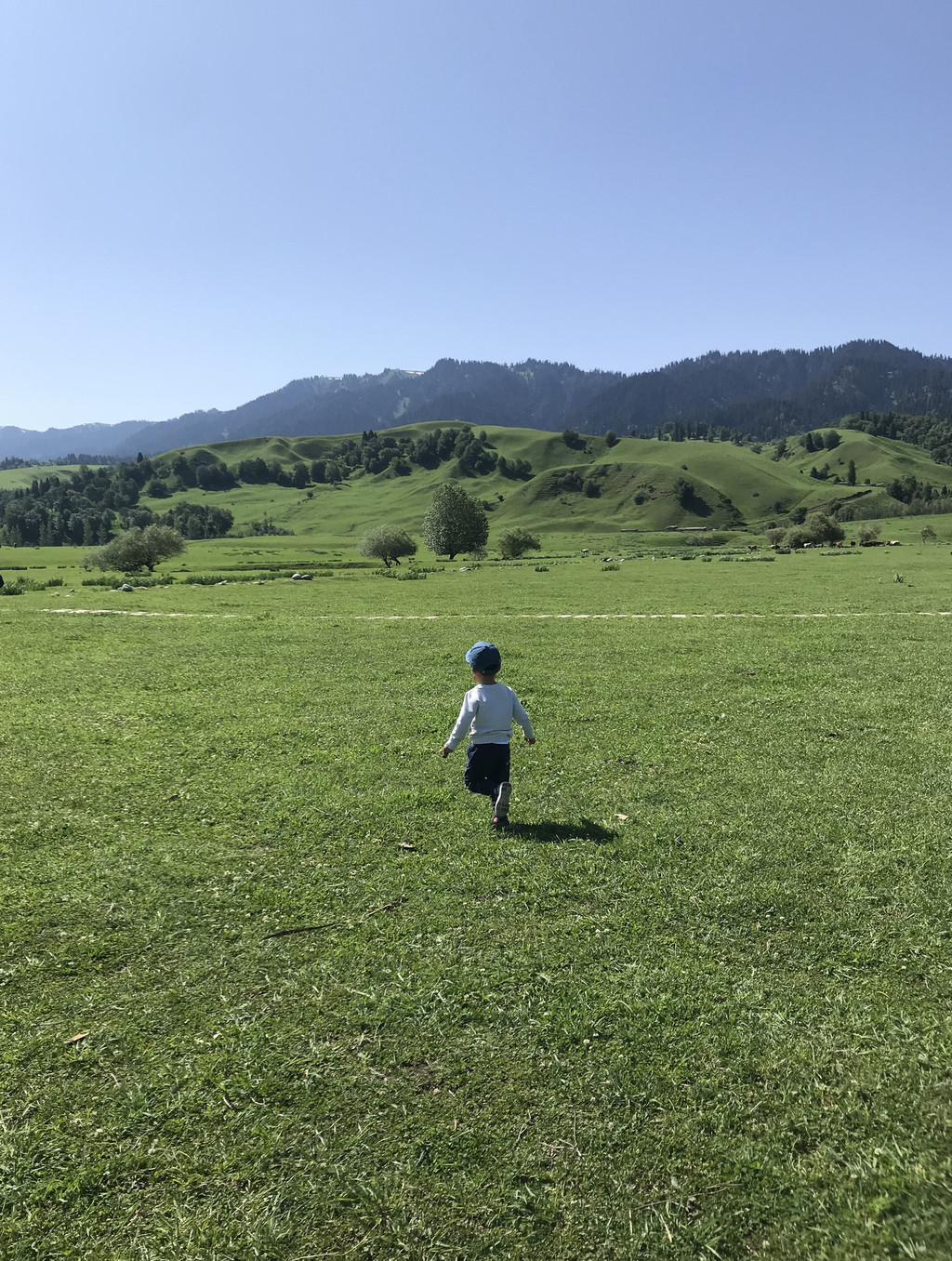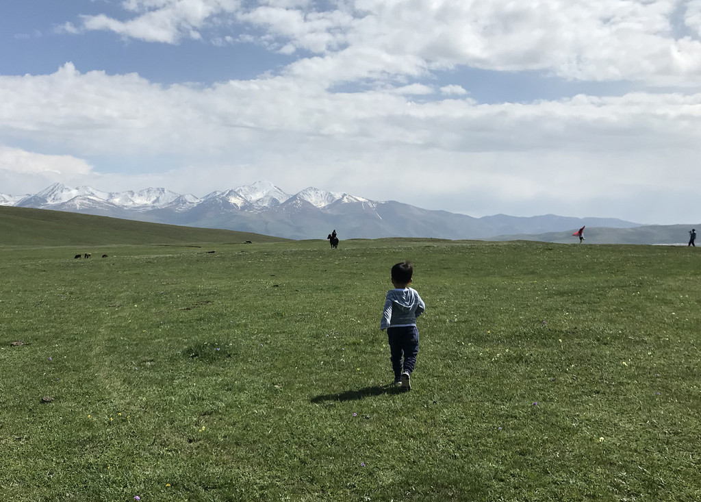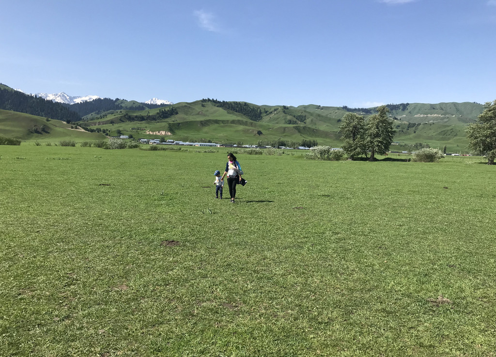 刚停车,祺小宝就一 头扎进了草原,一点也不逊色于远处撒欢儿的骏马。