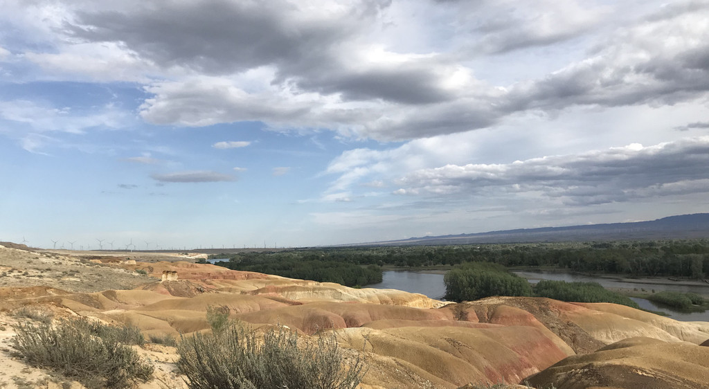穿越果子沟,很快就进入伊犁哈萨克自治州辖区,路边出现一条缓缓流淌的河流,河边百度了一下,这是伊犁河,北疆很有名气的一条河流,伊犁河是亚洲中部的内陆河,也是跨越中国和哈萨克斯坦的国际河流。