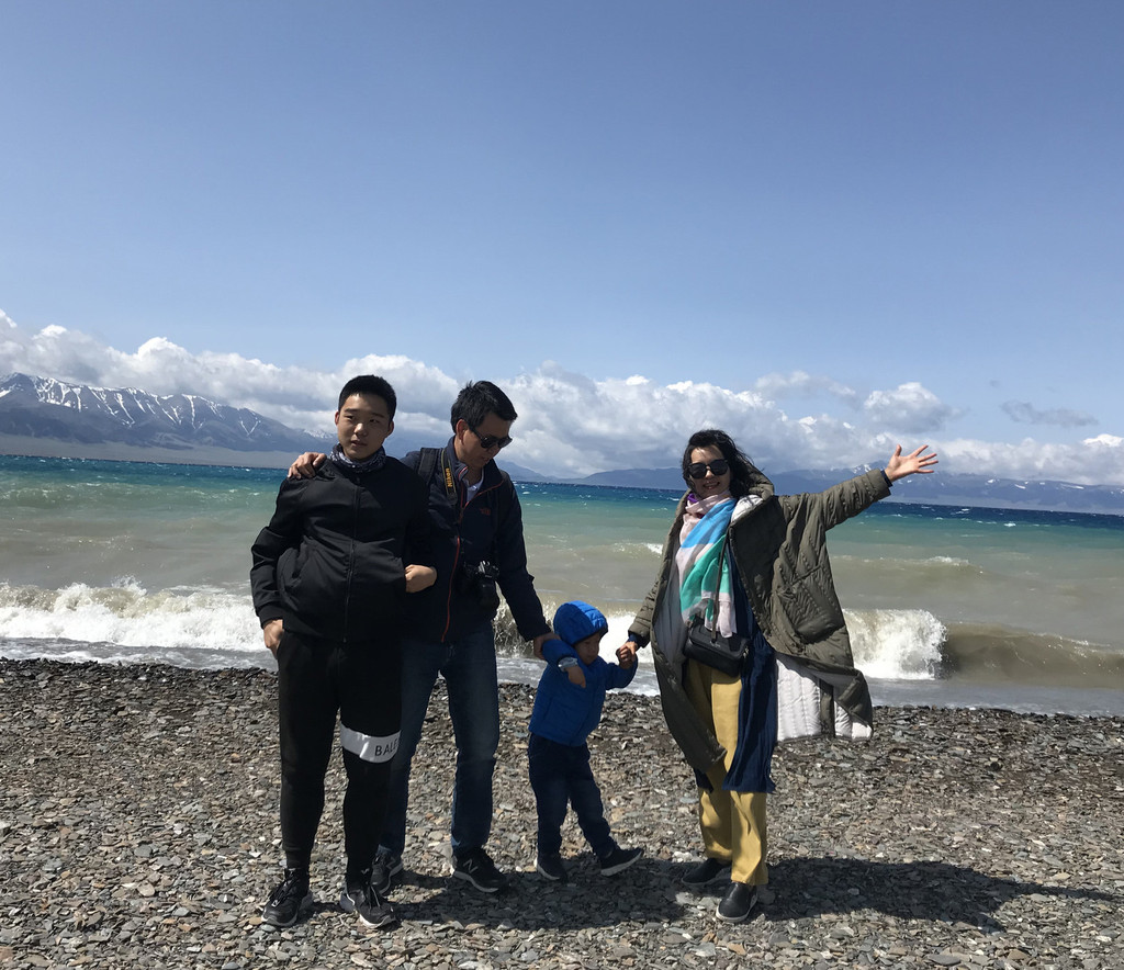 家庭出游,当然要有全家福,仪式感是要有的,集体出个镜,就着这难得一见的湖光山色,愿山河无恙,岁月静好!