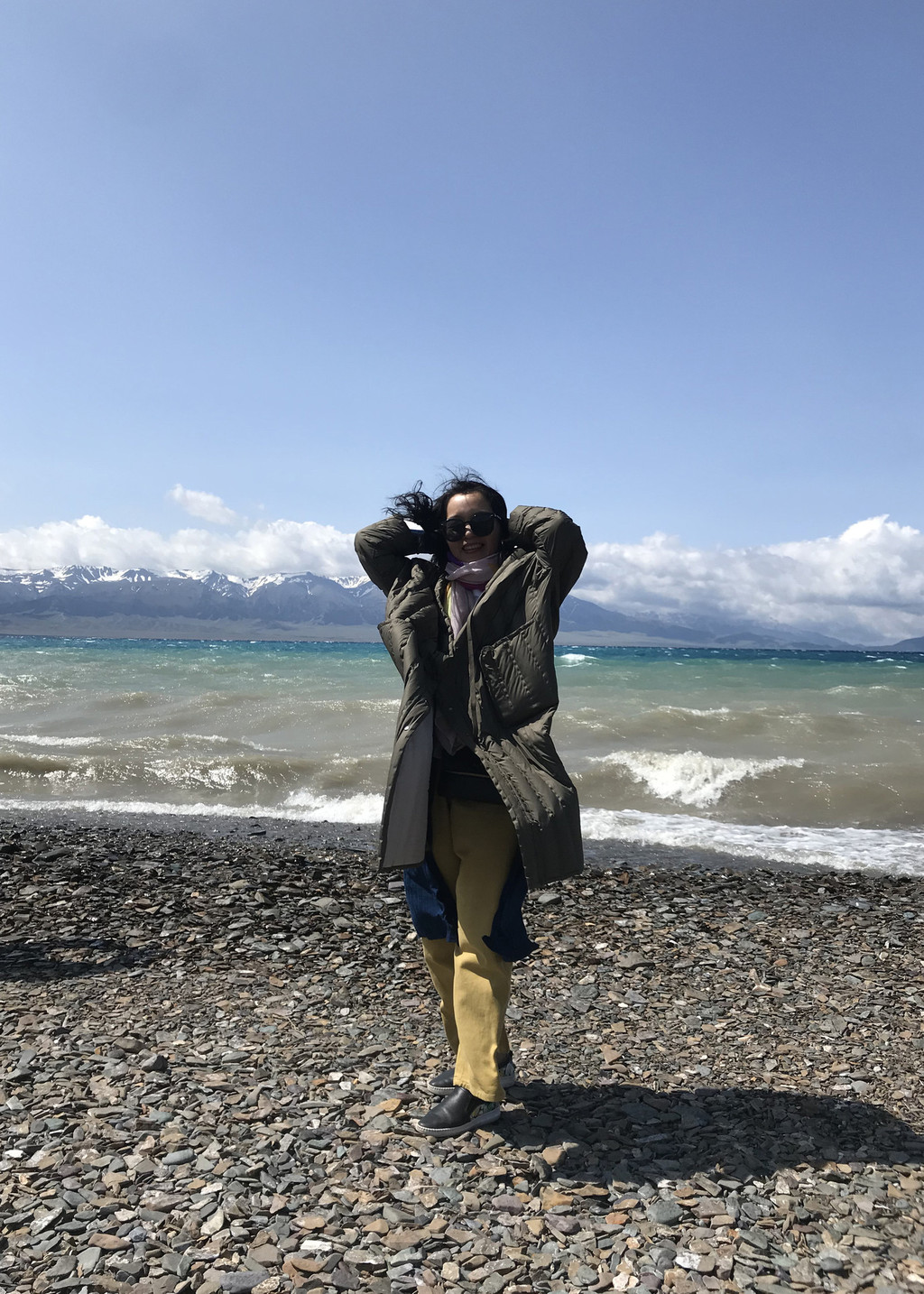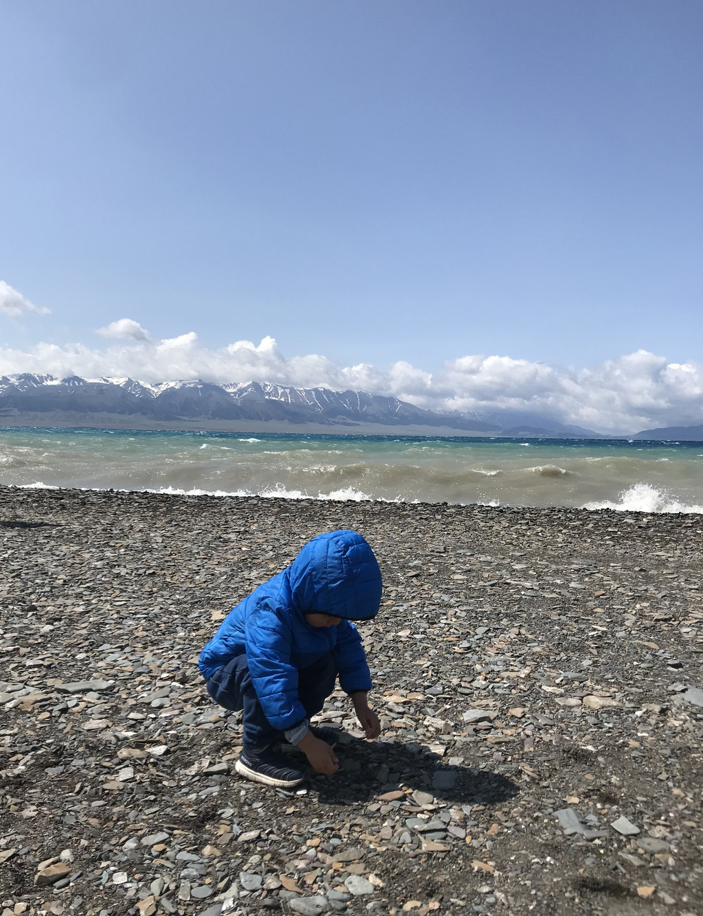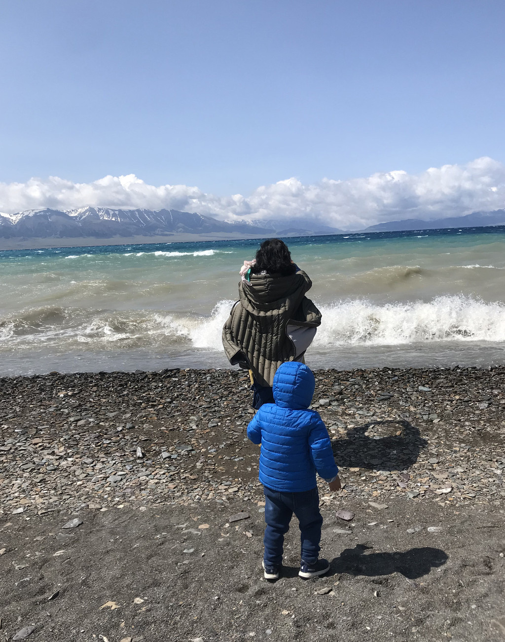 昨天在魔鬼城热得要死要活,今天在赛里木湖冻得生无可恋,到景区门口刚下车,就感觉风大得寸步难行,就旅行而言,今天不是个好天气,但难得到此一游,错过了又颇感遗憾,所以索性把最后的衣服全套到身上,顶着风来到湖边。接下来,所到之处,全是这般画风,祺妈已经顾不得漂亮了,不飘走就不错了,祺小宝更是了,把顶风当成了游戏。