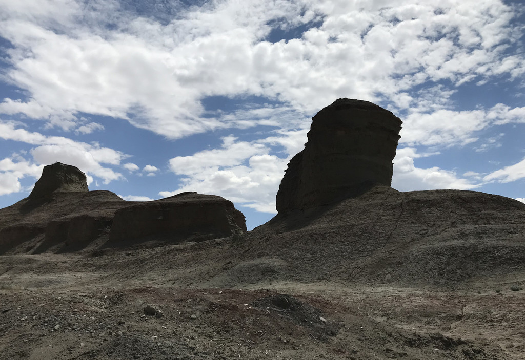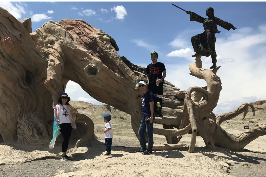 位于克拉玛依的魔鬼城,风蚀雅丹地貌,电影《卧虎藏龙》和《无人区》的外景地之一,各种奇特的造型,大自然的鬼斧神工,正好满足一下祺小宝活跃的想象力。