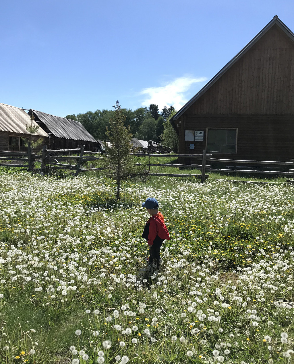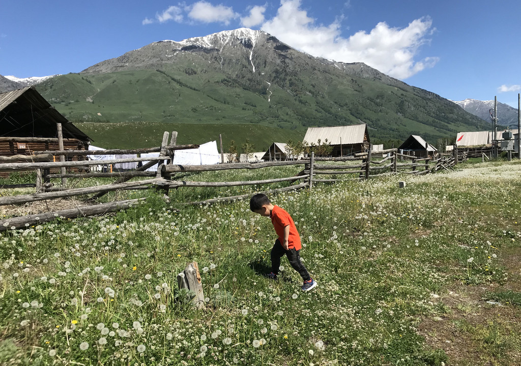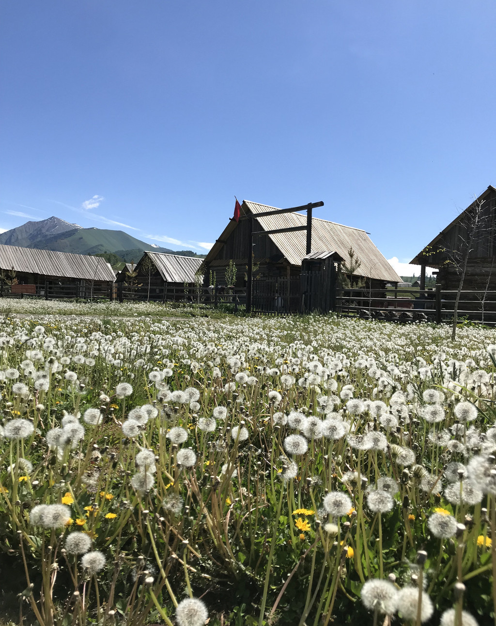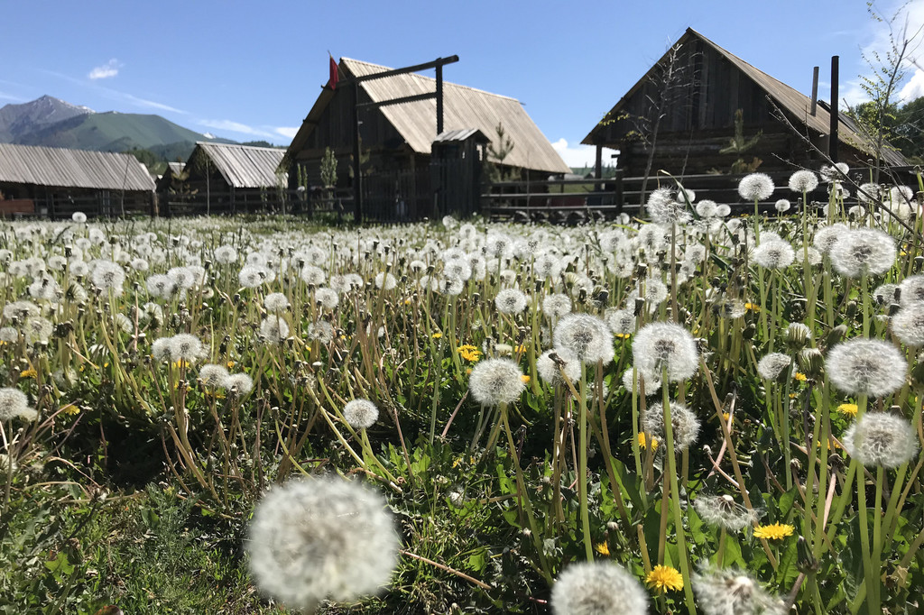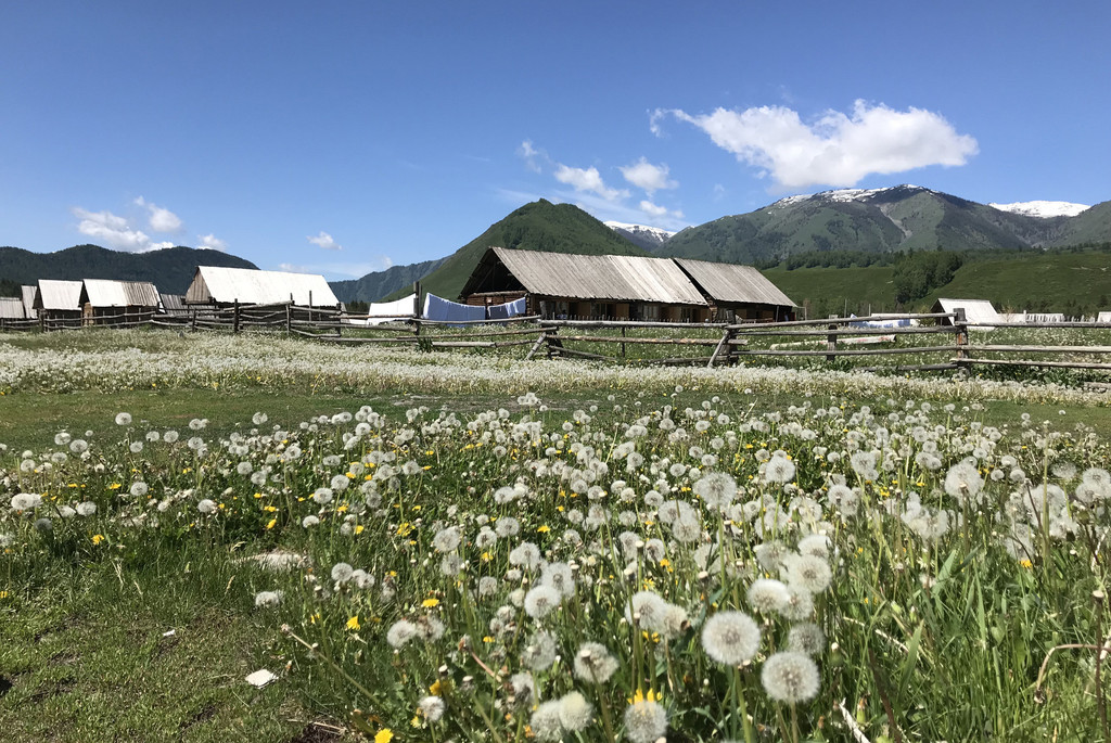 房前屋后,都是大朵大朵的野生蒲公英,喀纳斯湖的水汽加上雪山融水的滋润,让这片土地生机盎然。