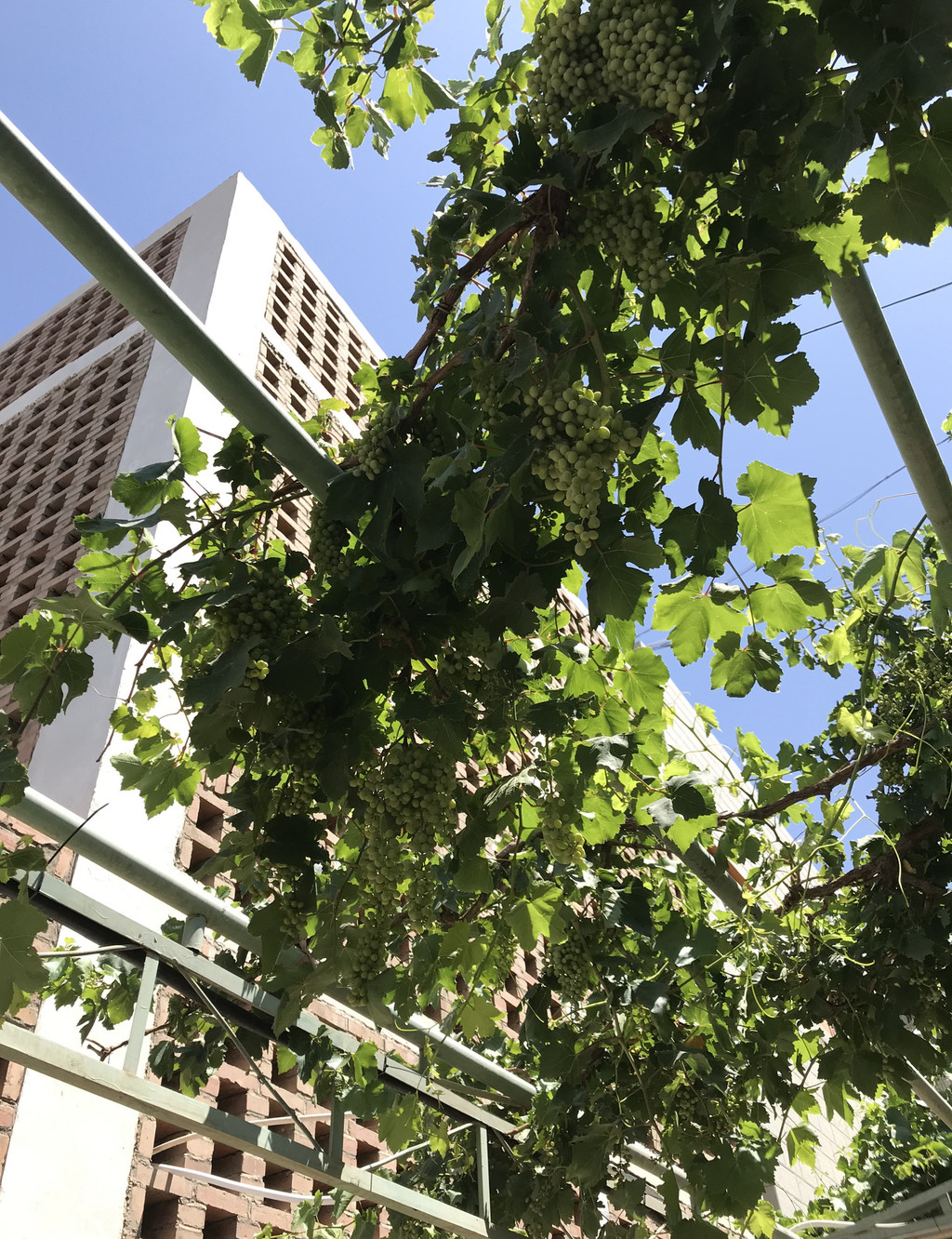 旁边,烘干葡萄的砖房,四壁都用红砖叠砌,四面墙上密密匝匝布满气孔。这种房子,当地维吾尔人称作“群结‘”,汉语里叫做阴房,这种建筑,在吐鲁番很常见。
