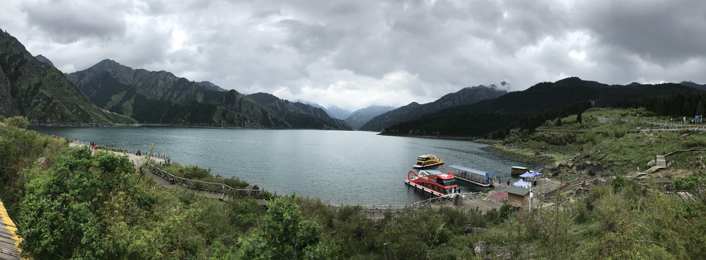 来张全景的天池,雨后初歇,乌云翻滚,宛若江南。