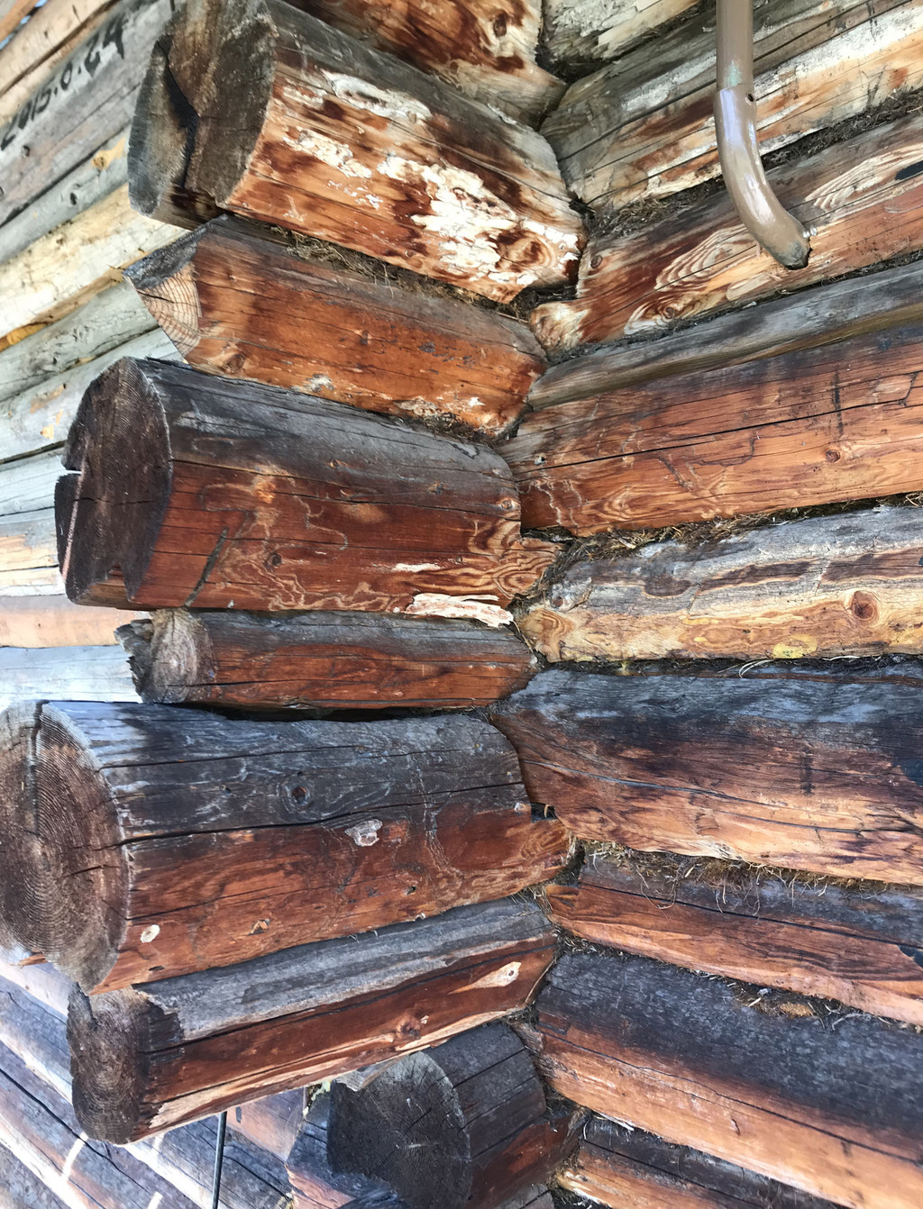 构成木屋的每一根粗壮的松木都要挖槽嵌扣,一层一层垒叠而起,缝隙处用一种叫做“努克”的草进行封填,这些松木和努克紧密连结,忠实地为主人撑起了一座温暖的家园,也缔造了独属于土瓦人的建筑风格。