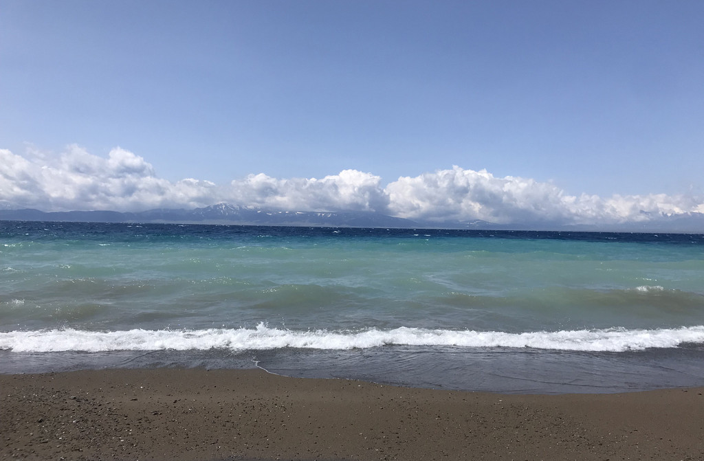 翻腾的赛里木湖,能想象风平浪静的时候有多美!远处的雪山,深蓝的湖水,诉说的是一种蓝色的忧伤,涵少说这像一杯蓝色的鸡尾酒,如果是鸡尾酒,今天恐怕是加入了伏特加了,才显得这么汹涌浓烈。