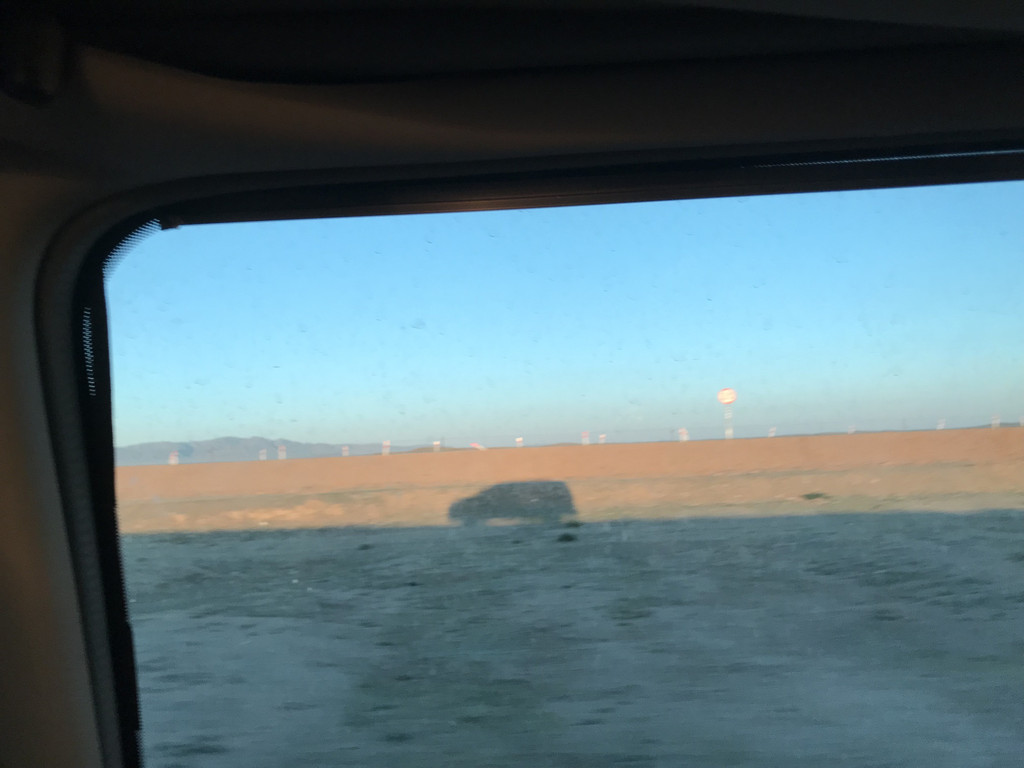 离开天池,前往今天的目的地布尔津,数百公里的戈壁荒漠,这一路,从日出走到日落。乌鲁木齐时间比北京晚2个小时,日落的时间更晚,晚上9点多,落日的余晖依然洒满荒原,车子在戈壁滩上映出了矫健的身姿 ,仿佛还有另一辆汽车相伴而行。
