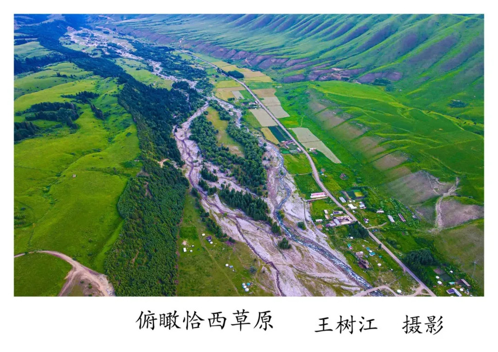 来新疆最常听到的一句话是:不到新疆不知中国有多大;不到伊犁不知新疆有多美。而伊犁最美的地方是恰西。恰西是一条宽敞清秀的山谷,溪水哗哗流淌,清澈见底。我用无人机拍摄的场面更加壮观:山峦芳草一片绿茵,仿佛是绿色的地毯;苍松凝翠,峰顶林立,苍岩露红,冰山隐约。在恰西呆了两天,住在毡房里,傍晚拍夕阳,早晨拍日出;自己做饭,悠闲自在;河边溜达,随心所欲,如同在世外桃源。