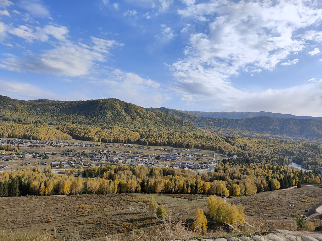 玩:秋天的禾木是最美的,成片的白桦林叶子开始变黄变红,开始落叶,爬上山坡,能看日出喝日落。路上快到禾木, 翻越一座座高山草甸白桦林,牛羊成群,美景如画。