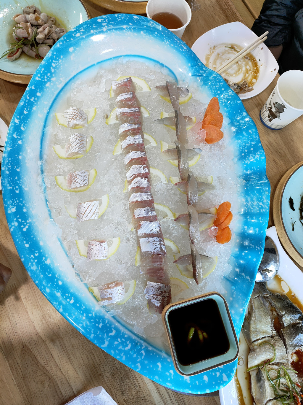 吃:点将台的高白鲑真的值得去尝试。我们4种做法全部尝遍了,刺身和清蒸一样好吃,排第一,香煎排名最后。但是价格不菲。