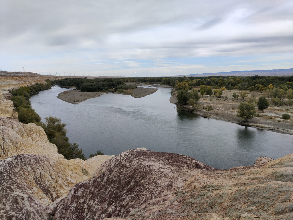 傍晚5-6点到布尔津五彩滩,看雅丹地貌,额尔齐斯河和胡杨林。