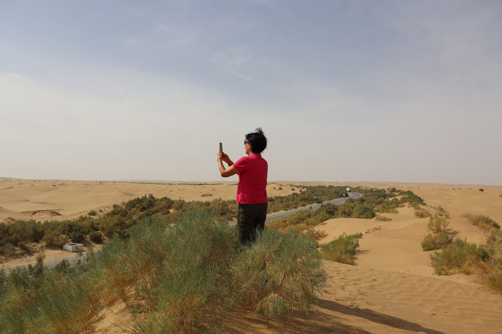 这就是这条路的基本情况,沙漠、公路、防护林带。
