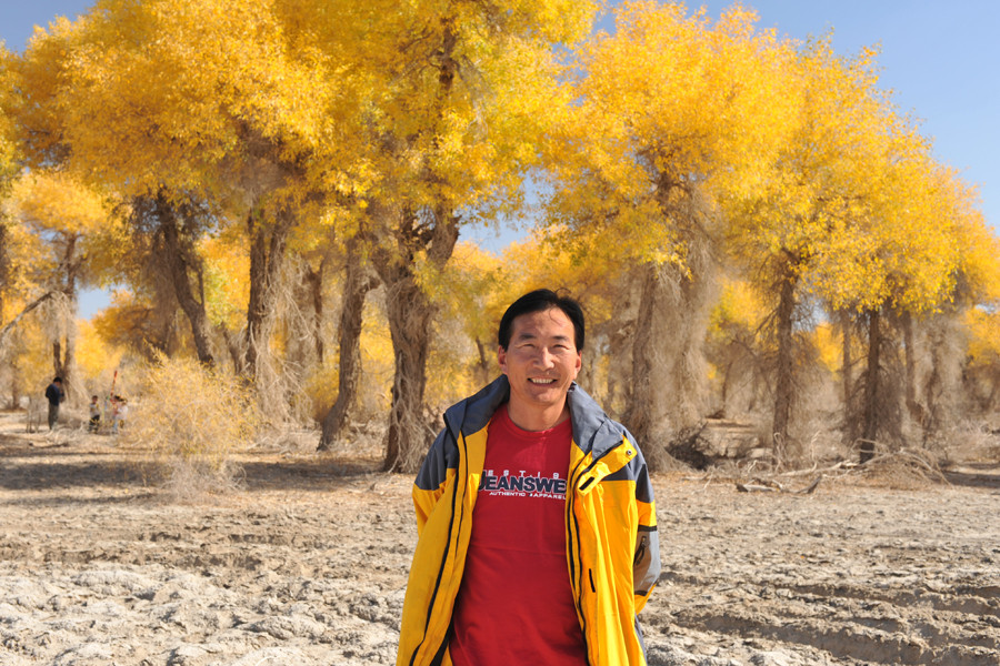 10月:喀纳斯的白桦林、南疆的胡杨。