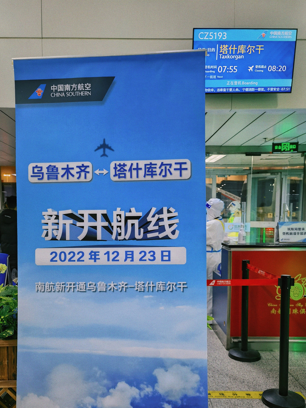 到达机场,办好登机牌。“塔县首航,冬日喀什之旅”就正式启程了。