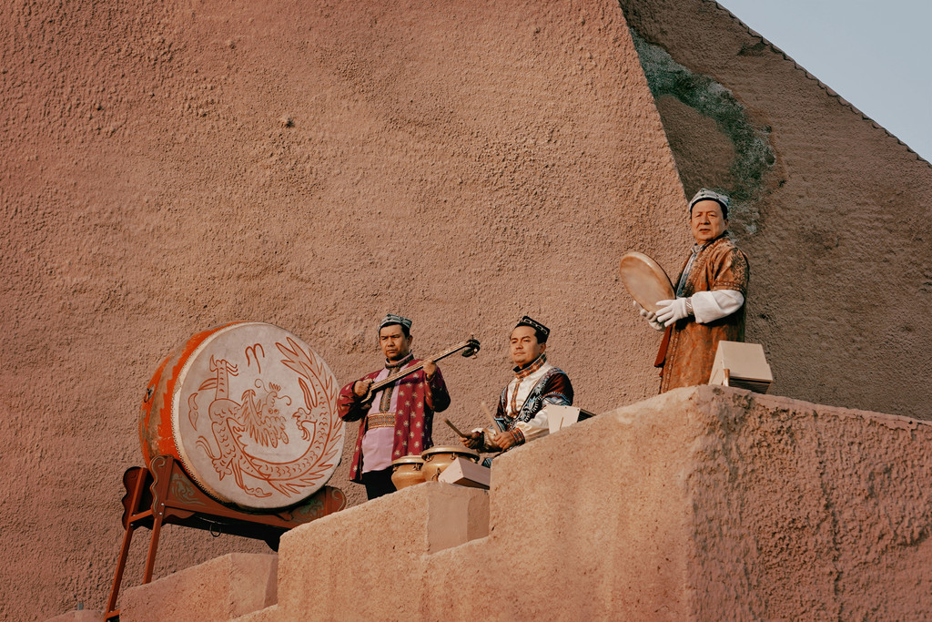 为了更好的保护和传播这种传统艺术,在莎车的很多地方大家都能欣赏到十二木卡姆的表演。比如,位于莎车古城的【莎车非遗园】。