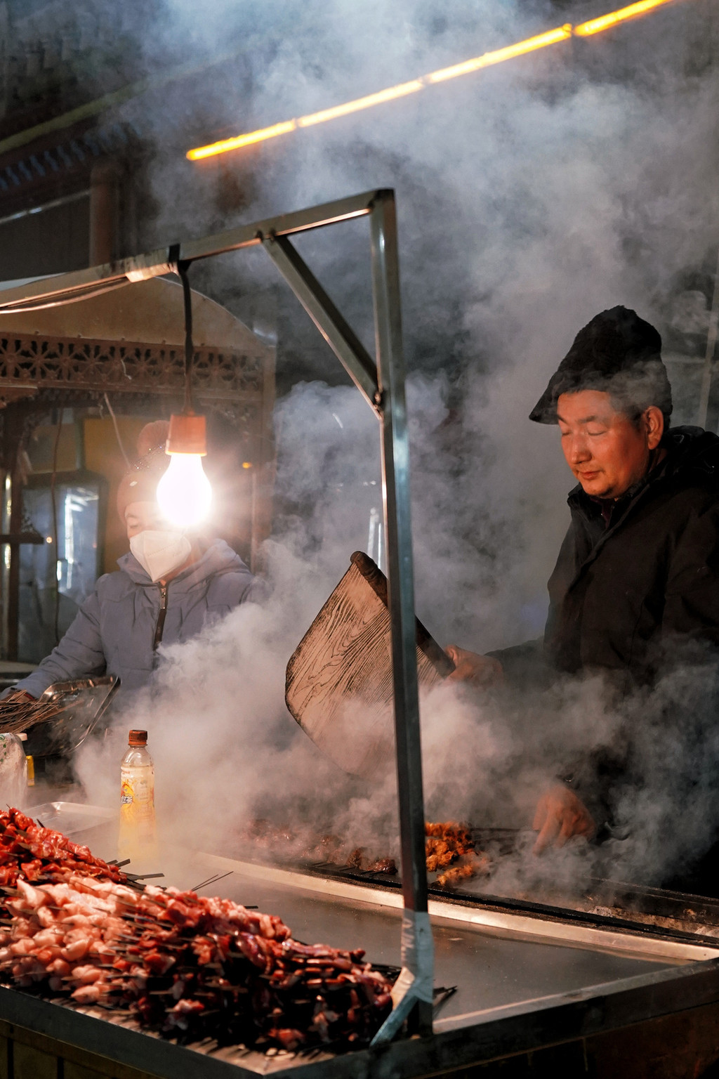 烤包子、烤木瓜、烤肉串、羊杂汤、面肺子,还有各种叫不上名字的新奇食物……只是看看都觉得眼花缭乱。