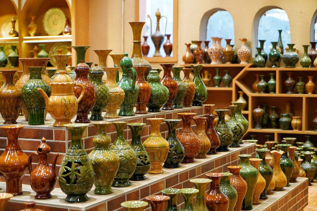 英吉沙县的土陶烧制历史已达千年,要经过10多道工序纯手工制作,具有极高的观赏和艺术收藏价值。