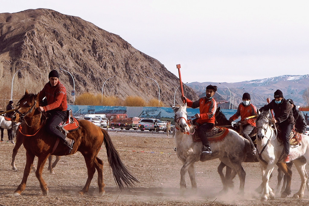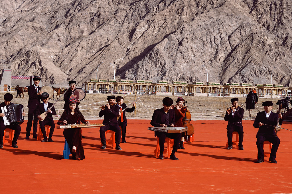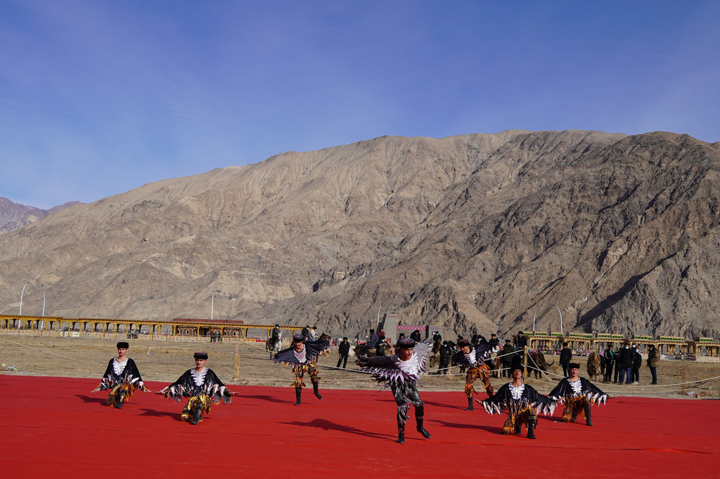 以山为幕、地为席,一块红毯就是大自然中最耀眼的舞台。悠扬的塔吉克族民歌、代表塔吉克族精神的鹰舞接连上演。