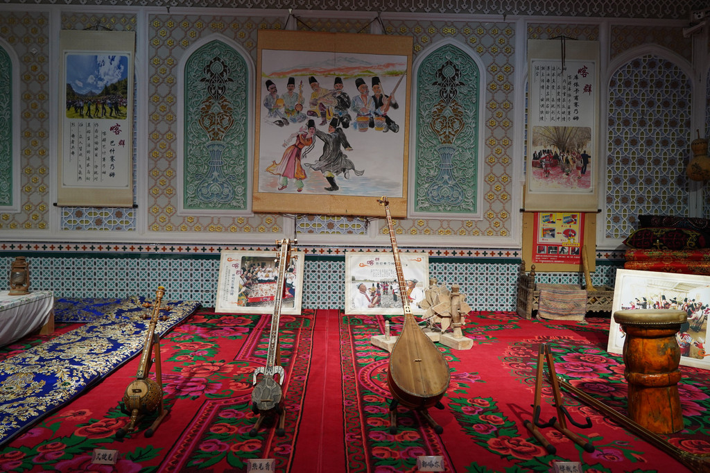 莎车是“十二木卡姆“的故乡。自从到了喀什,我们就一直听到人们提及十二木卡姆。这是一种汇集了歌、诗、乐、舞、唱、奏于一身的音乐形式,一整套演奏完要二十几个小时,是维吾尔族古典音乐的代表。