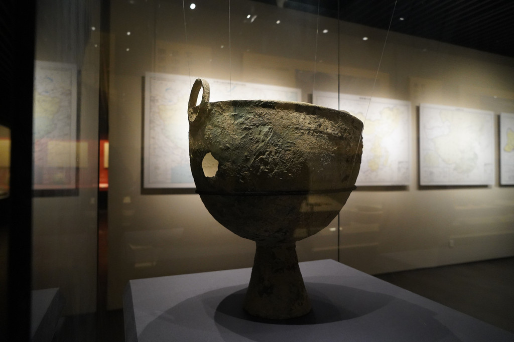 第三个展厅则展出了属于新疆中世纪即伊斯兰教传播喀什之后的与伊斯兰教文化有着密切关系的珍贵文物。其中包括:镇馆之宝魏晋时期三耳陶罐,距今2800年前的铜釜,以及宋代的丝质男士长袍等。