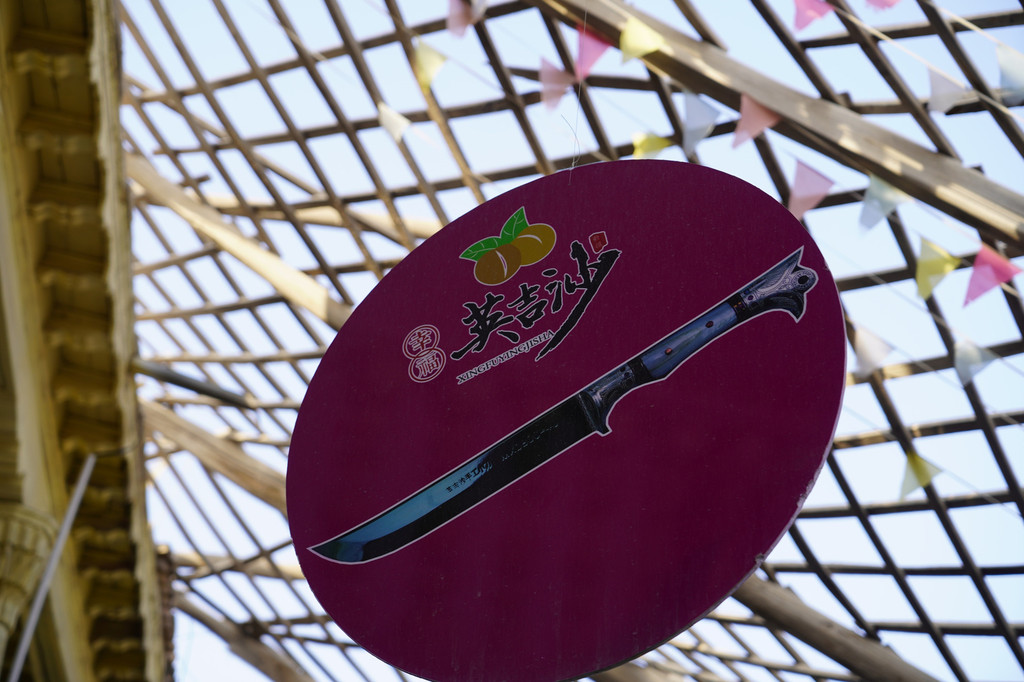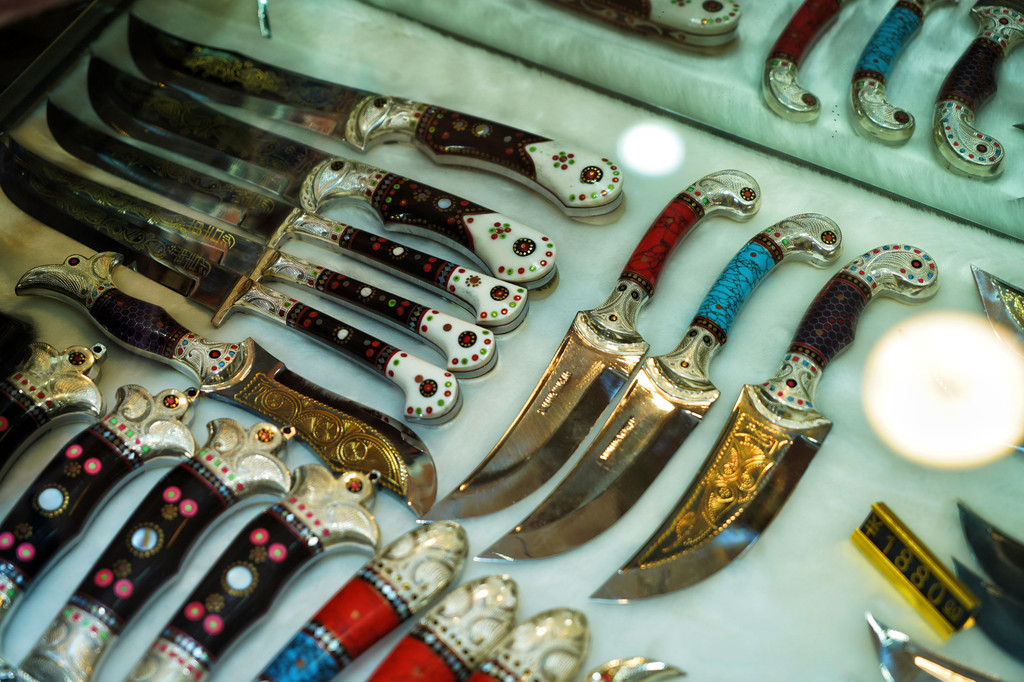 英吉沙的小刀是新疆最具代表性的手工艺品之一。有四个世纪的历史,刀口锋利无比,有“削铁如泥”之说。工艺繁复、造型精美,刀柄的纹饰有鲜明的民族特色。