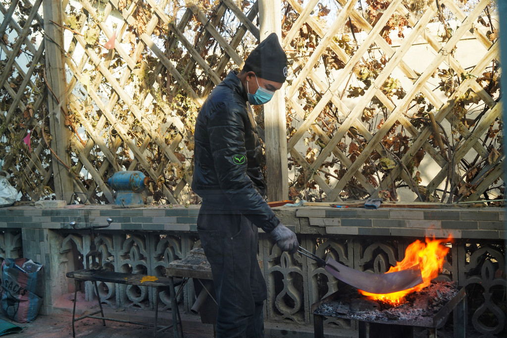 在小刀村,游客也可以参观了解到一把英吉沙小刀的整个制作流程。最后,还能在店里挑上一把心仪的,店家还可以帮你邮寄到家。