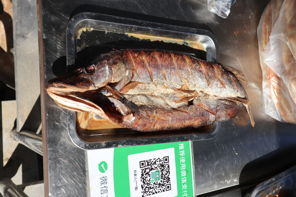 这里还有出售餐饮之地,看见了诱人的烤鱼。
