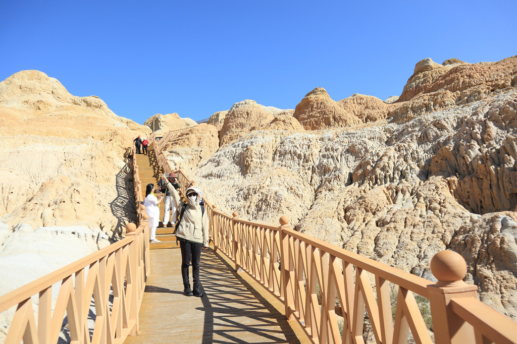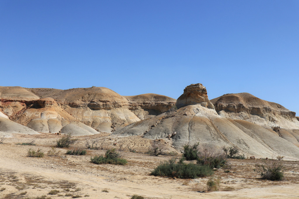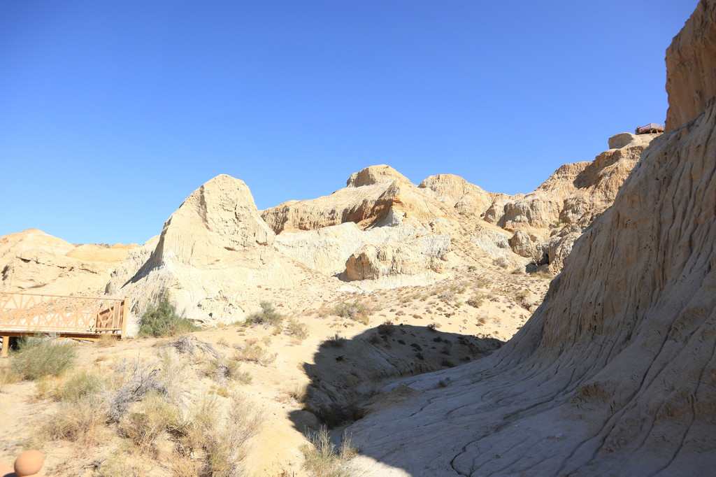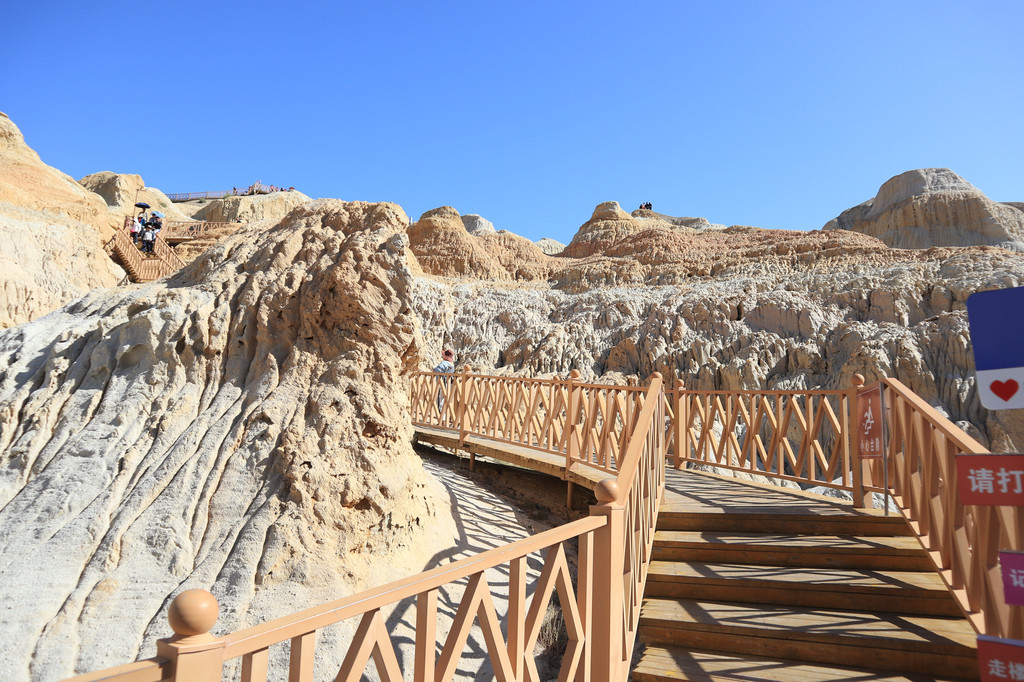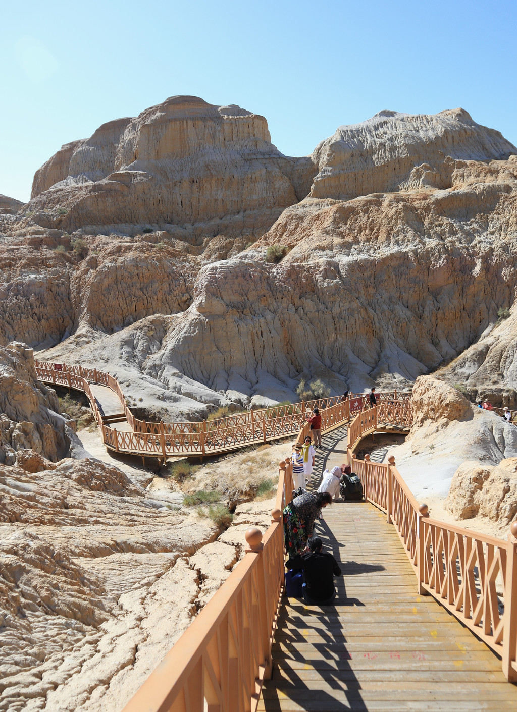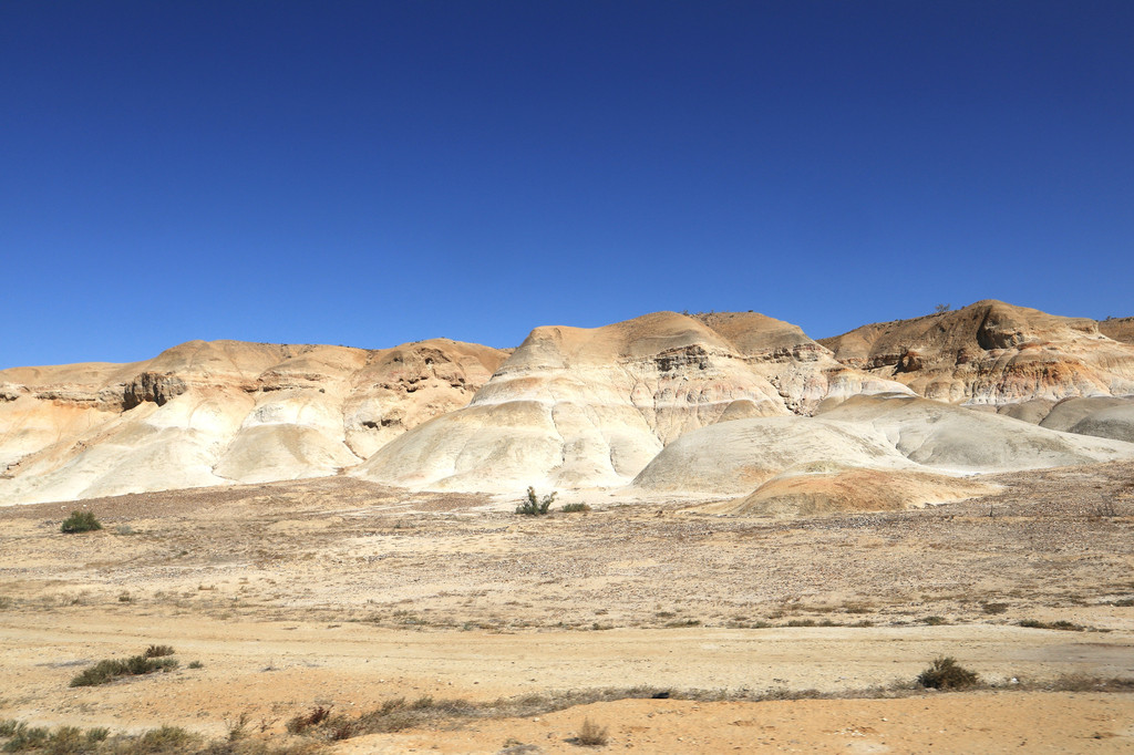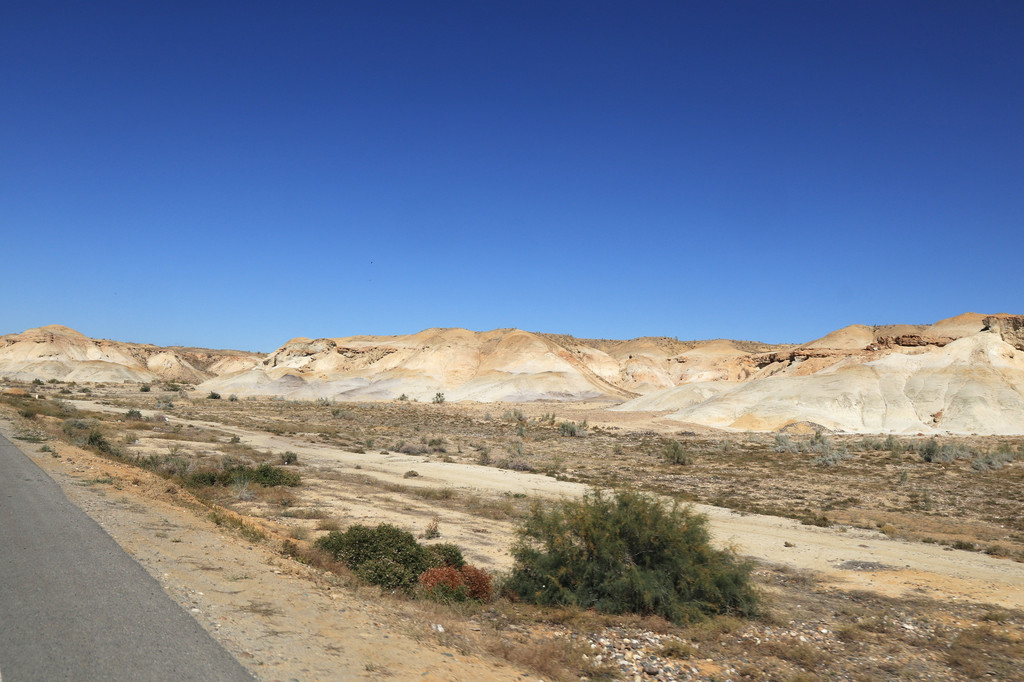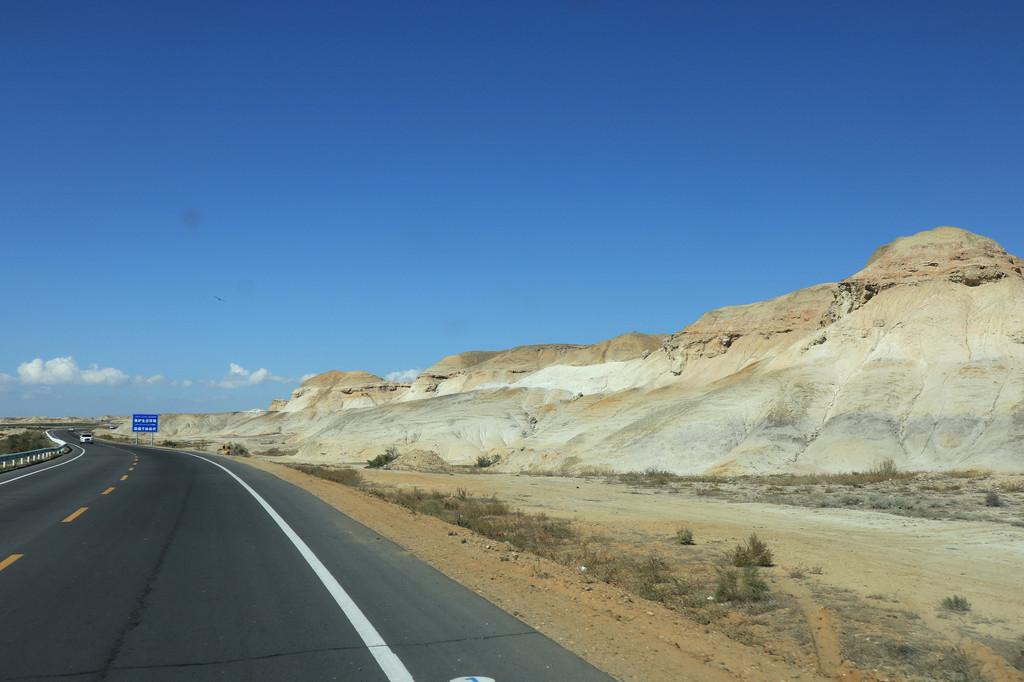 随后的很长一段路,公路旁始终相伴着连绵不绝的雅丹地貌,形状、颜色都很漂亮。