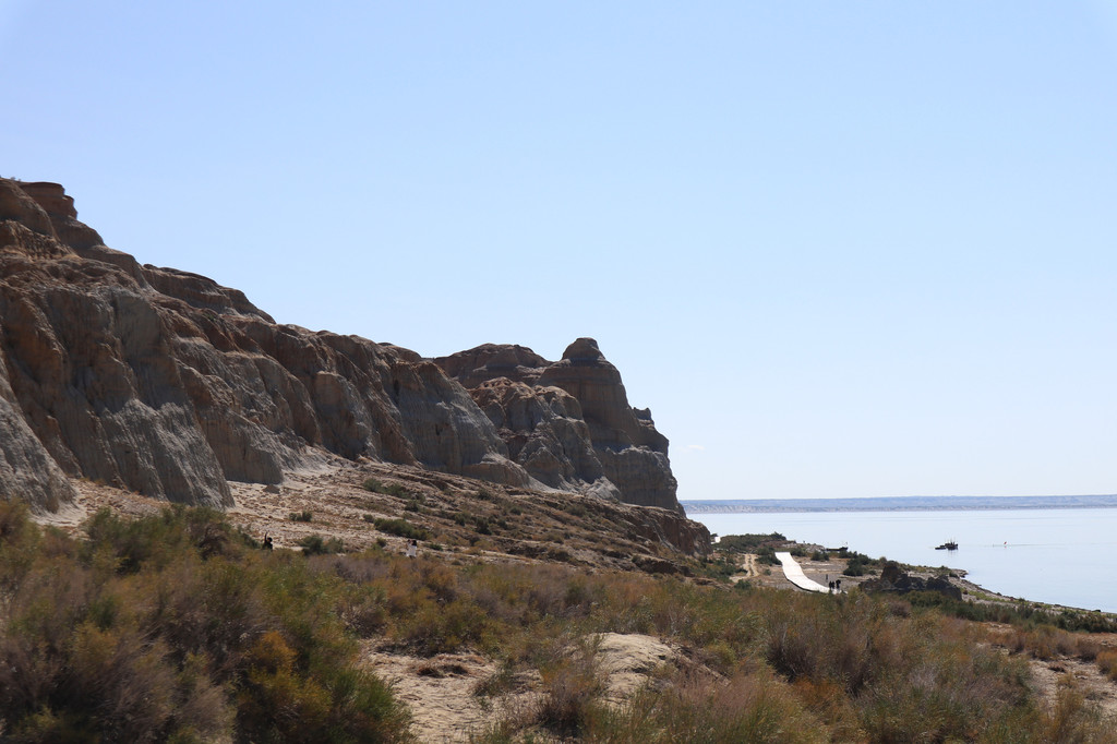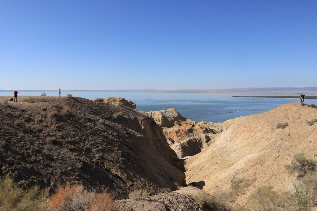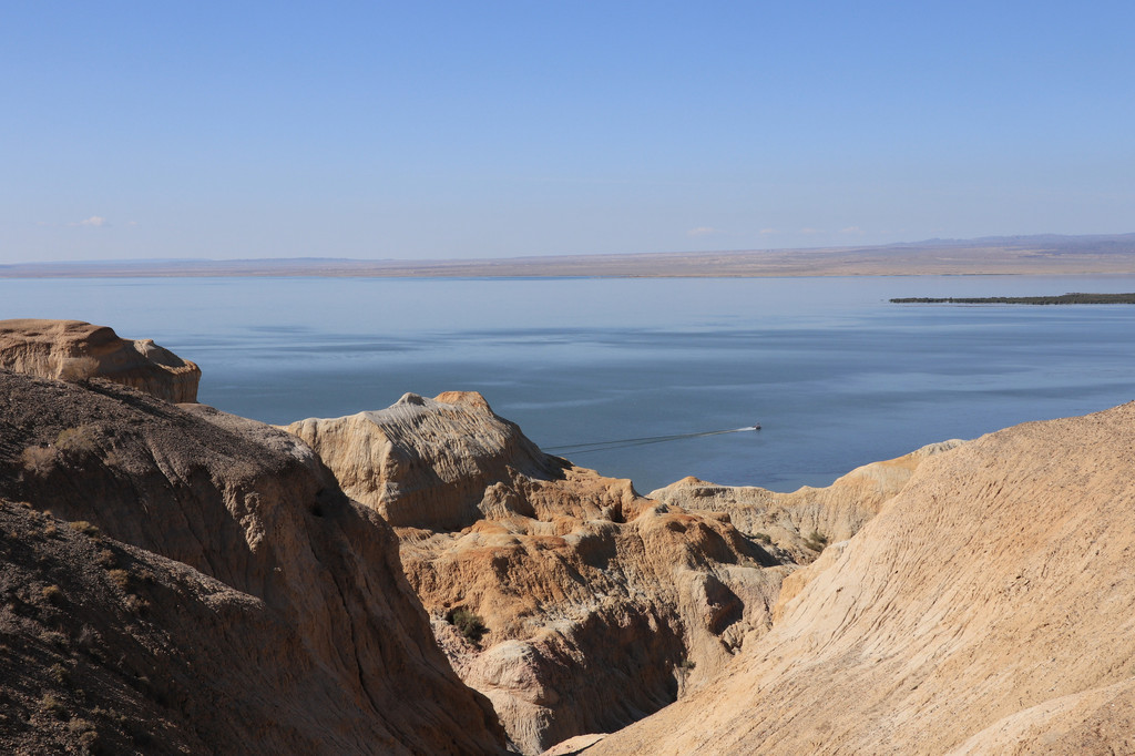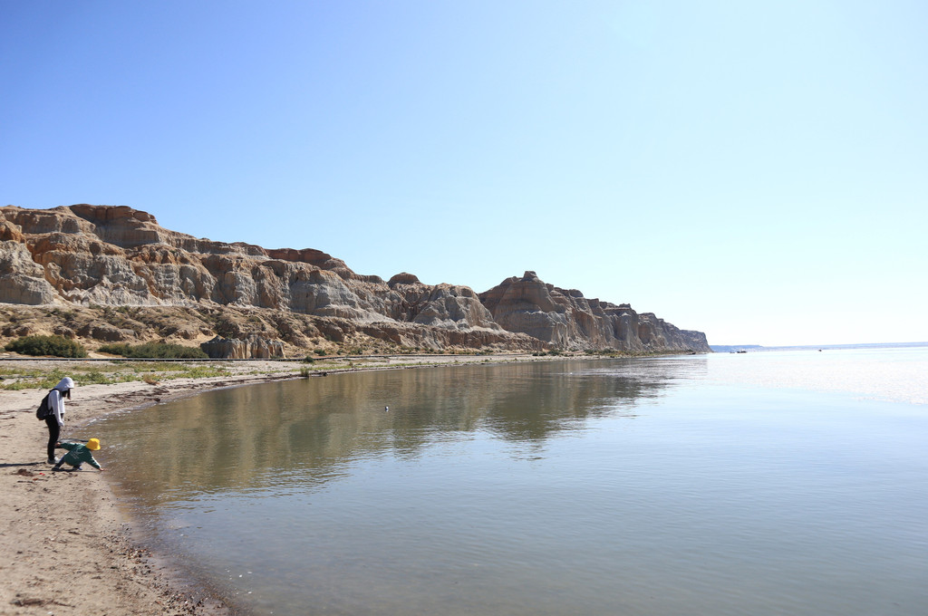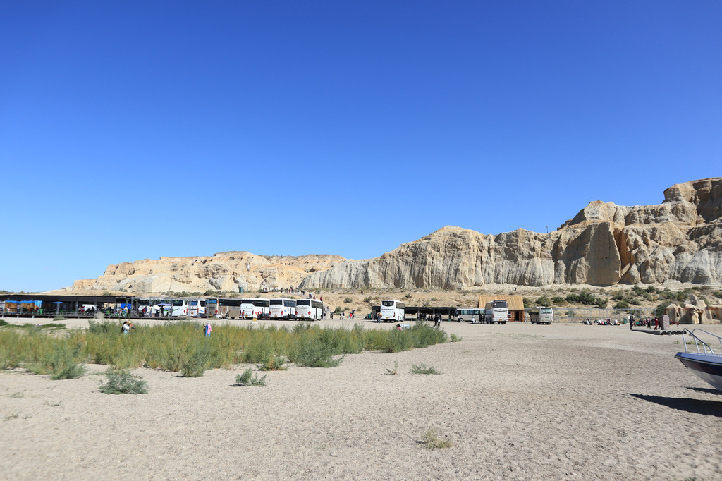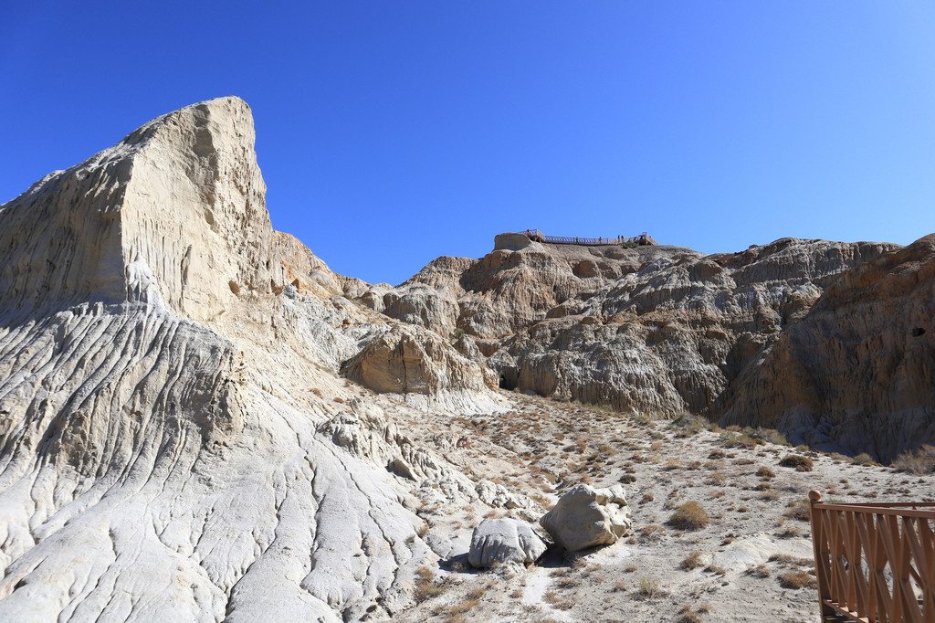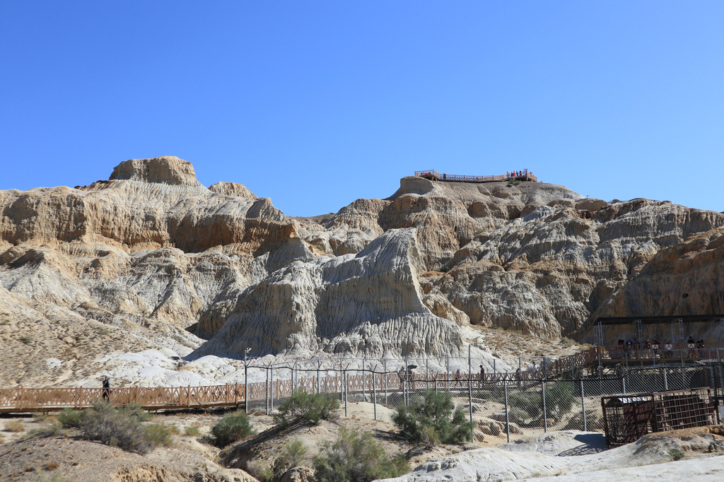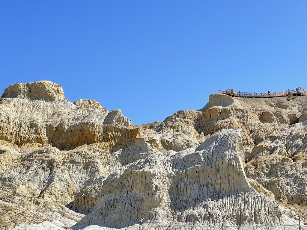 进入景区,照例先乘坐景区车,好在不很长,几分钟而已。而后走上几步路,就能在山崖边看到乌伦古湖和海上魔鬼城的身影。所谓魔鬼城,是当地人对雅丹地貌的一种形象的描述,因为远远望去,就象一座飘浮在水面上的城堡。