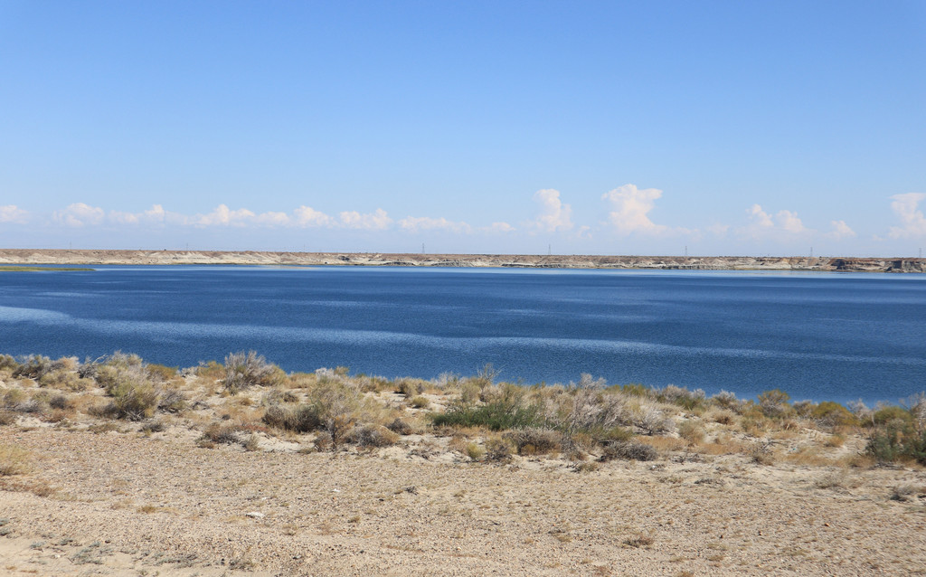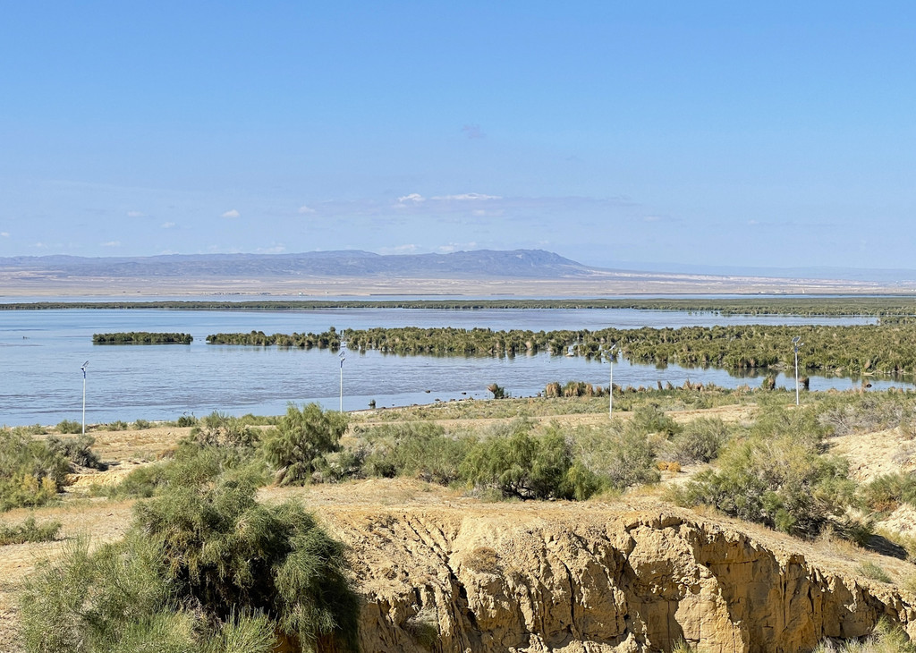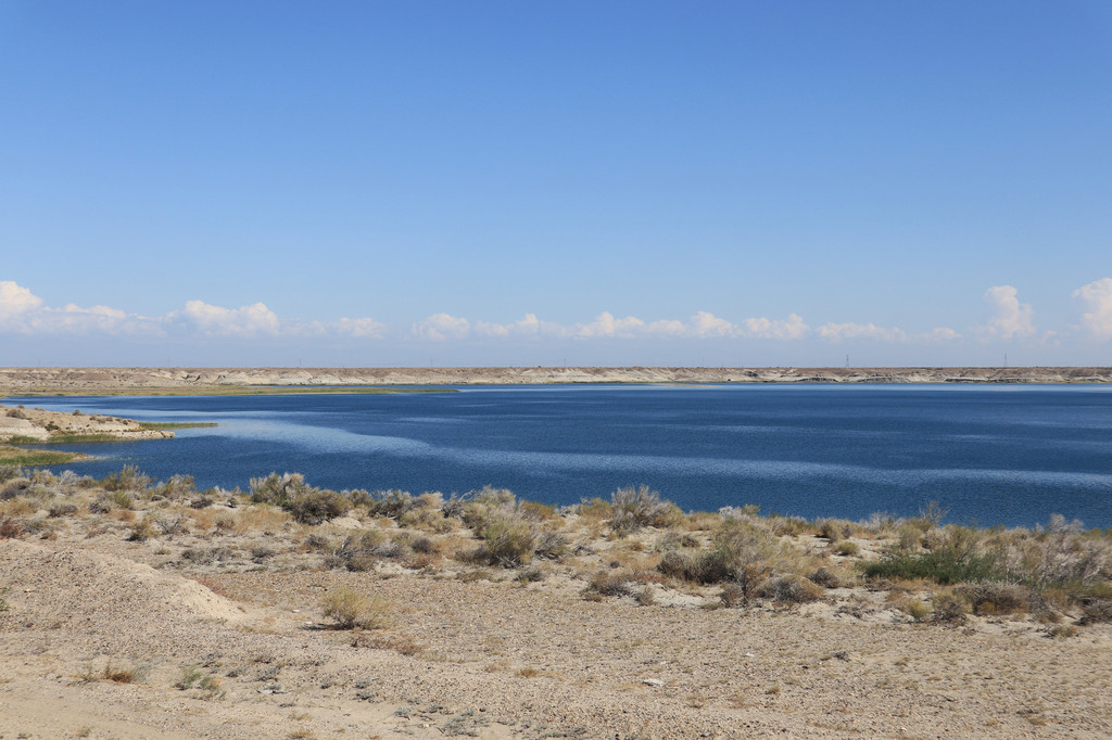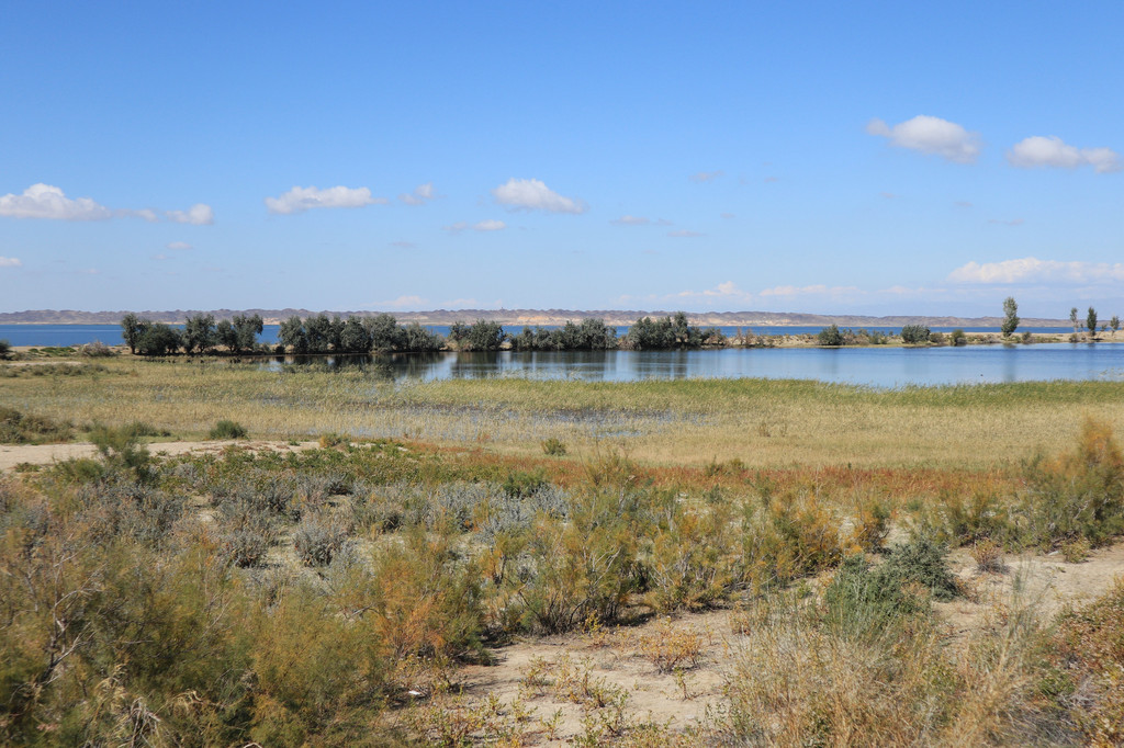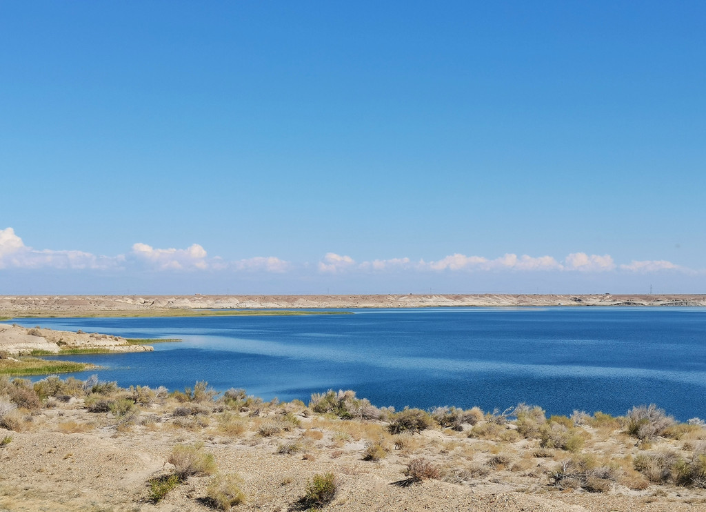 虽然这片水域号称乌伦古湖小海子,但面积并不小,依然那般辽阔、浩渺,水蓝蓝,天蓝蓝,远方更是水天一色。