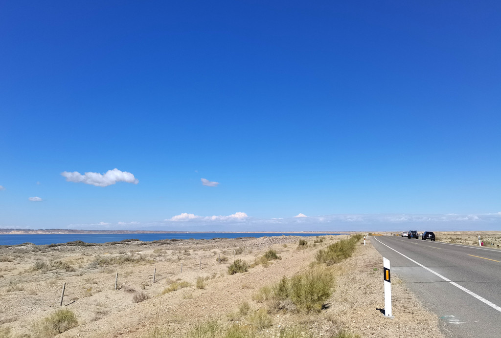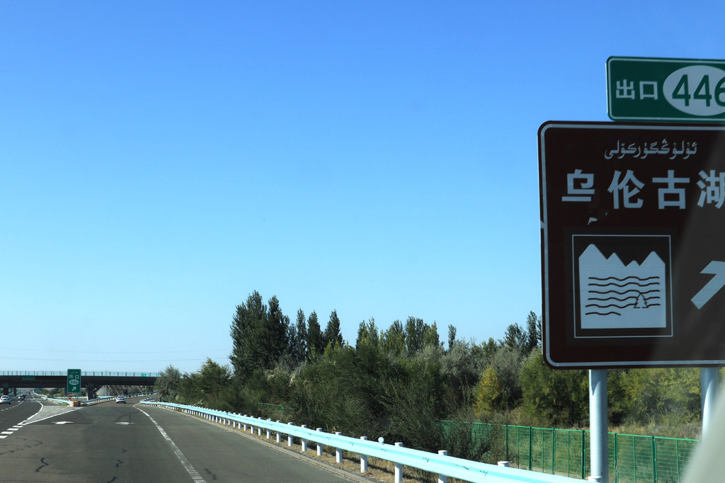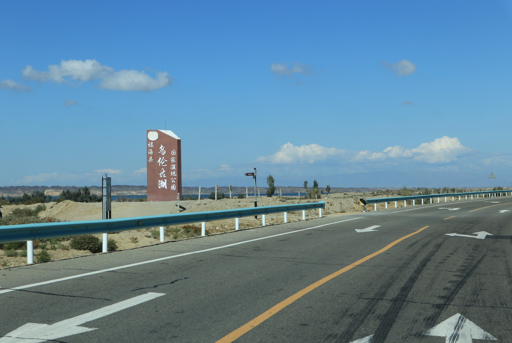 路旁出现乌伦古湖的路标,距目的地已不远。