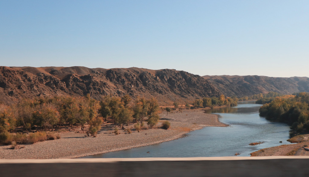 昨日游览可可托海·额尔齐斯大峡谷,下到河滩,与额尔齐斯河亲密接触,今天再度与额尔齐斯河不期而遇。
