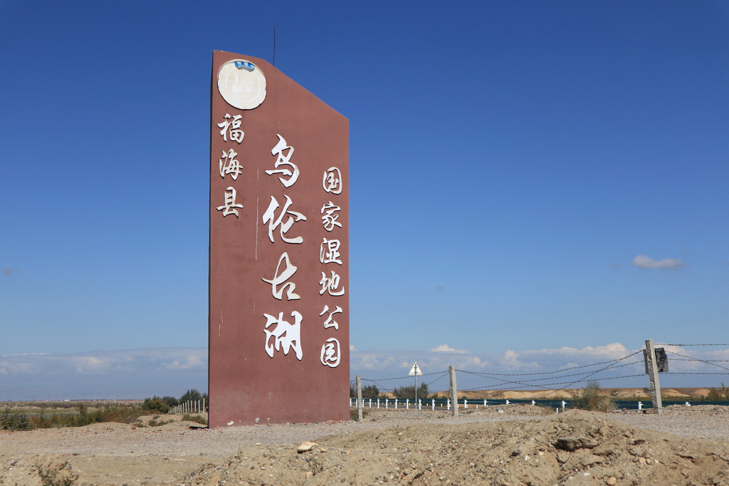 当时并不知乌伦古湖有多大,及至离开魔鬼城景区行车1个多小时后,再度看到乌伦古湖湿地公园的标志,才明白乌伦古湖原来如此之大。继而再多说一句,直到写游记查询资料时才晓得乌伦古湖还有大海子、小海子之分。