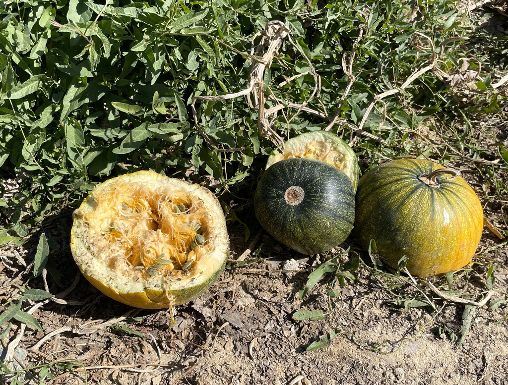 新疆阿勒泰地区的无壳南瓜子仁很有名,不知是否就是这种瓜?网上查阅:无壳南瓜又叫裸仁南瓜,是中国南瓜和美洲南瓜的变种。附照片:185团的大面积无壳南瓜地。
