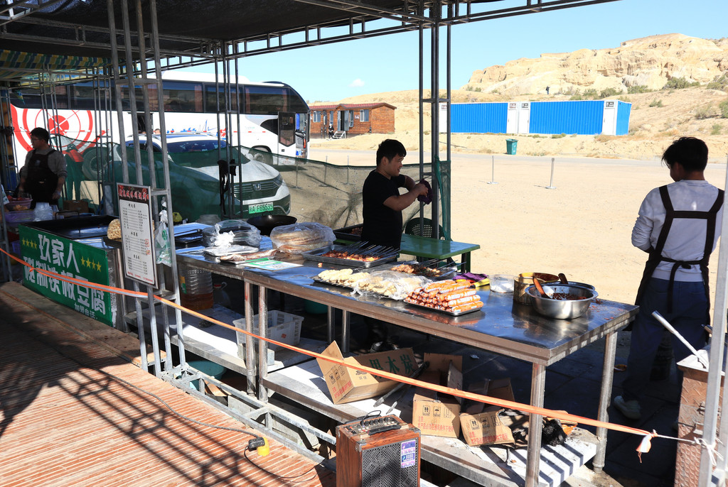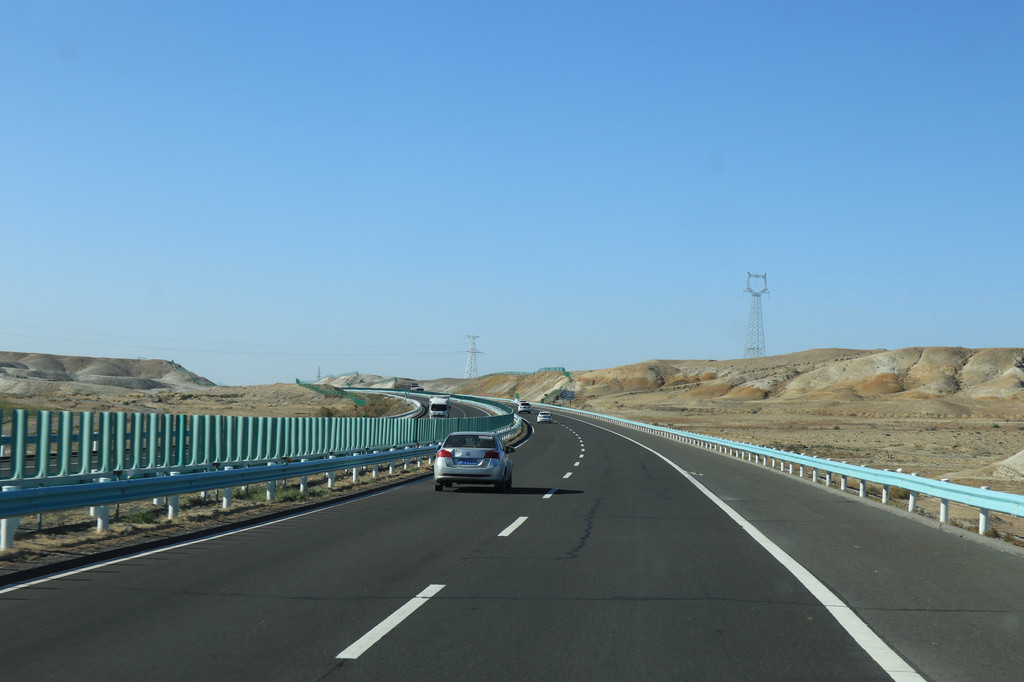 13点多离开魔鬼城。不想在沿途的小饭馆吃饭,车上常备有多种馕,再吃些自带的其他食品,肚子里蛮舒服。