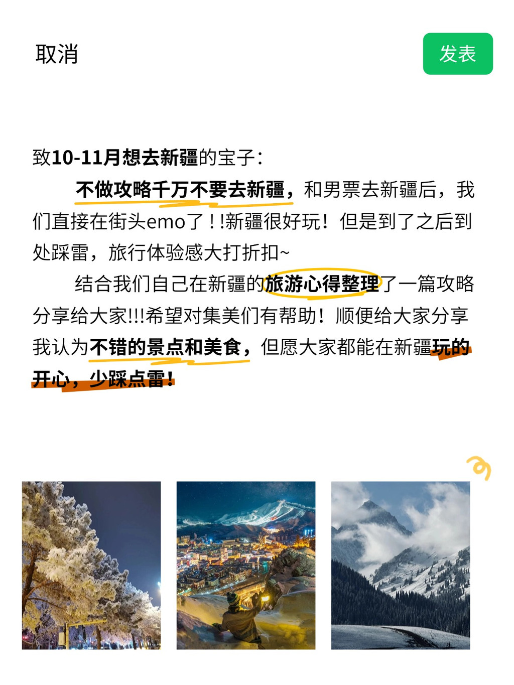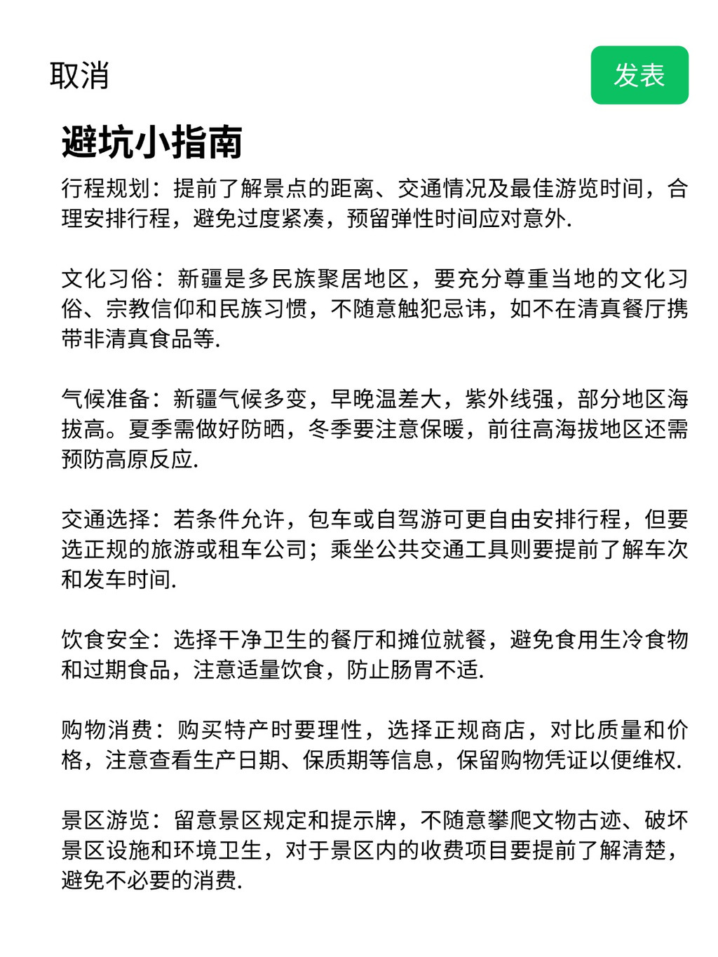 1.新疆面积大,景点分 散且距离远,不建议自驾,会很辛苦。