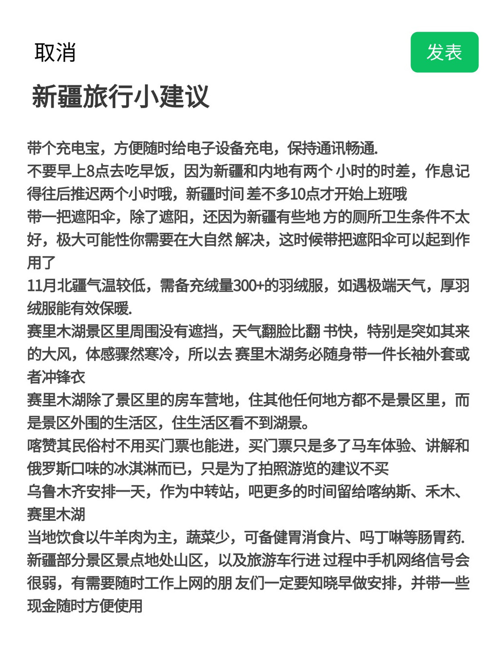 5. 新疆好多地方没有信 号,提前准备好现金。