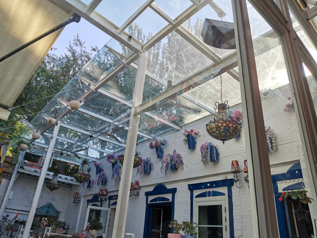 伊宁的道路不宽,遇上高峰期堵车厉害,约车也难。抵达民宿,安顿好快21点了。从民宿到六星街,步行可到。我们虽没吃晚饭,但仍然直奔网红古兰丹姆手工冰淇凌。这家店很火,晚上排队可以堵住街道,但白天人不多。在六星街,这家店面对面开了两家门店,一边买的是9.9元的原味冰淇淋——这原味冰淇淋也分两个队,一个队伍是现场装杯的原味冰淇淋,一个是早已装盒的原味。现场装杯的原味更柔软,口感更丝滑。对街的那家队伍排得也长,但因为有个前院,所以不至于排到街上,这里卖的是各种口味的冰淇淋,价格也贵得多。两边我都吃了,还真没觉出贵的必9.9的好吃,只是贵的颜色和名字很打动人,比如伊犁蓝——就是蓝色的冰淇淋而已。个人认为原味就很不错,排队短,移动快。而这家冰淇淋最大的亮点是小料无限量任意加,无论是9。9,还是昂贵的,你可以随时任意添加各种小料——管够管饱的那种。不少人慕名而来,买了冰淇淋就走,然后坐在街边吃,他们不知道“小料”是这款冰淇淋的灵魂——我最喜欢的小料是瓜子仁、南瓜仁、核桃仁、鹰嘴豆、花生米;“任意”是这款冰淇淋的关键,这种自由度极大,发挥性极强的“关键”真是让人欲罢不能。两边的店面都有小院,一个在前,一个在后,9.9元的店面有个中庭,里面有张长桌,摆满了各色小料,穿过中庭,后面还有个小院,里面也有张长桌,也可以加小料。很多人只看到中庭的小料,没往内走,体验感因此减色。坐在很有民族风情的小院里,捧着一杯冰淇淋,边吃边加,一杯无限延伸,最终甚至可抵两碗饭,真是太爽了!