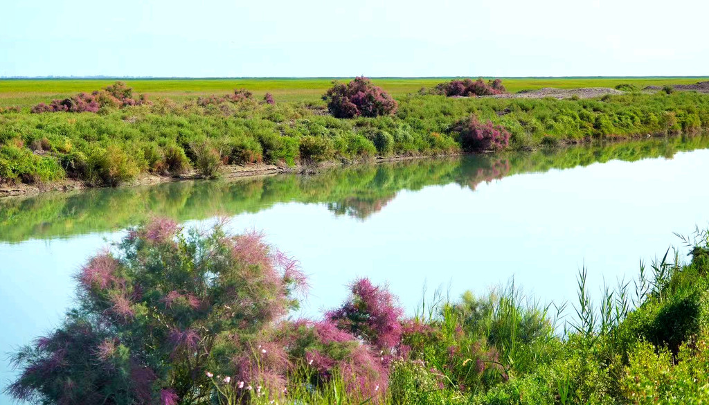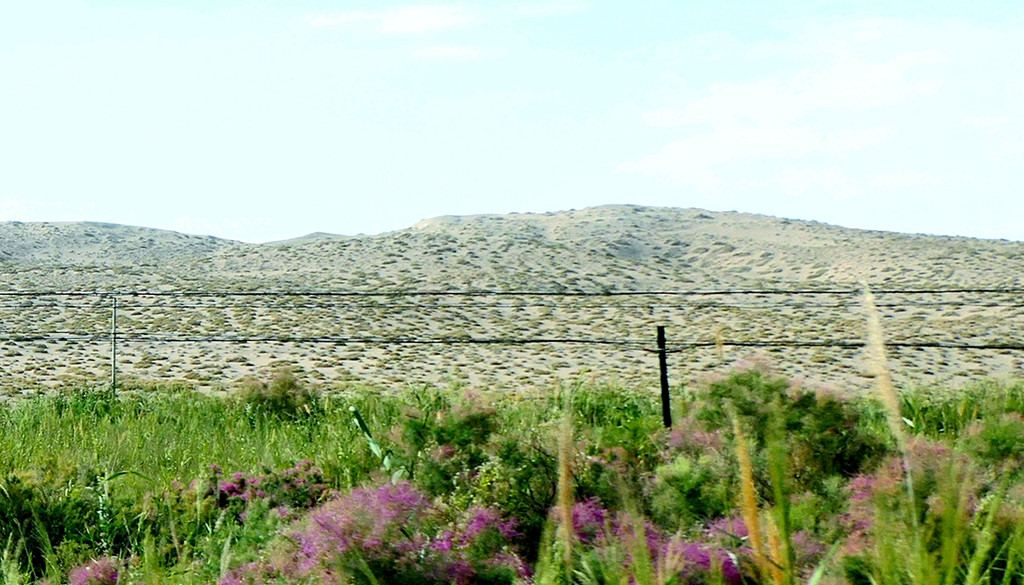 离开酒庄,驶上公路,我们沿着一条好似人工开挖的河道向东疾驰。左侧,清澈的河水缓缓地流淌;河对岸,湿地一望无际,绿意翻涌向着天际蔓延。而右手边,却是全然不同的景致,高低起伏的沙丘连绵,勾勒出一幅好似苍茫大沙漠的模样。两种截然不同的地貌在视野中并存,景观甚称一绝。